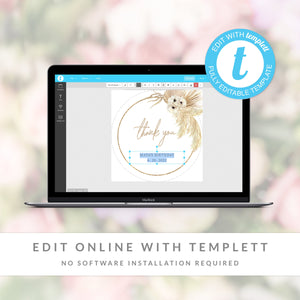 These favor tags are available as an INSTANT DOWNLOAD editable template. Edit right in your browser using the online program, Templett. No software to download or fonts to install and you can even try it out before you buy!