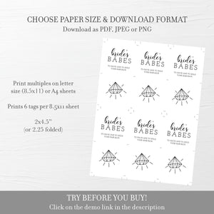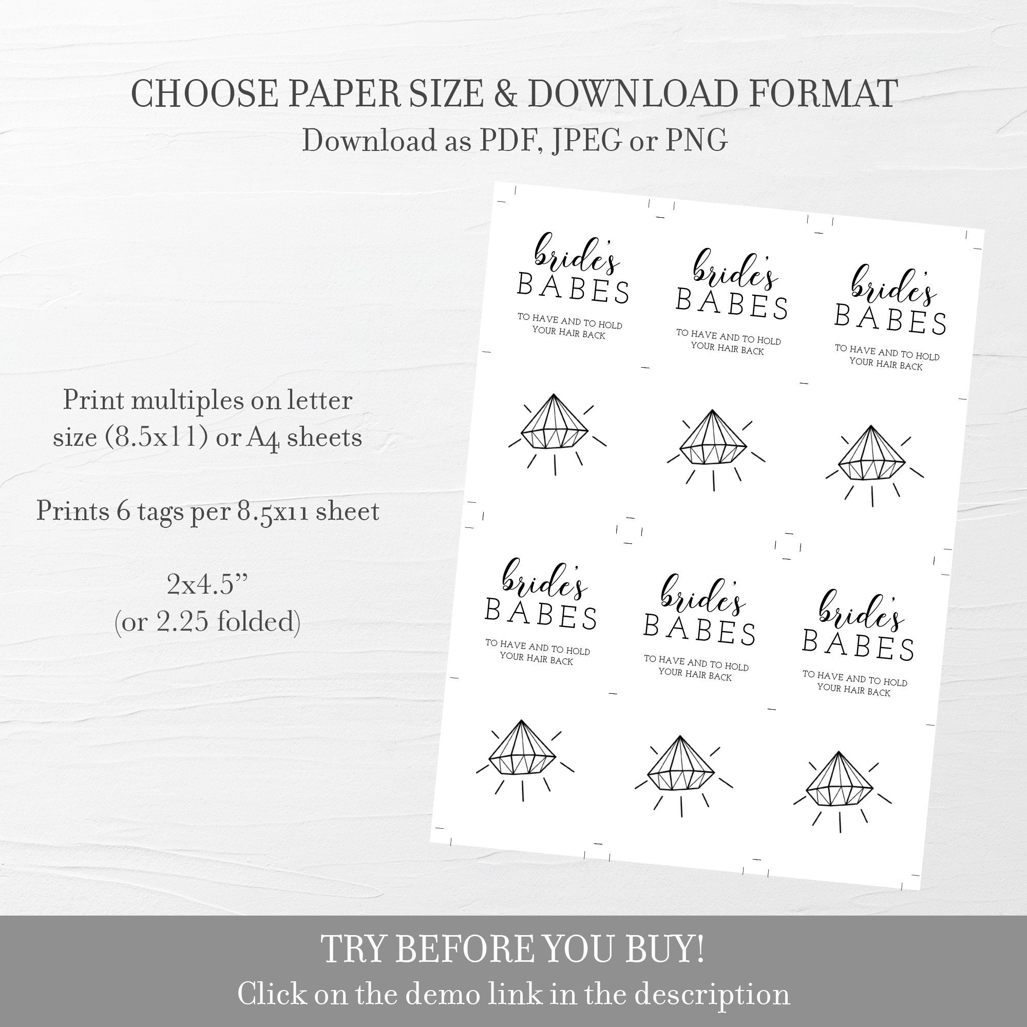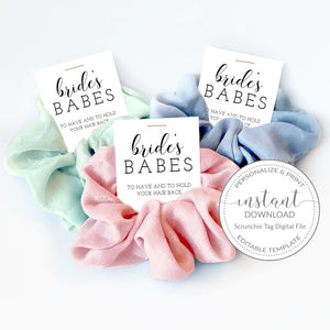 Printable Brides Babes Tag for Hair Scrunchies Template, Editable INSTANT DOWNLOAD