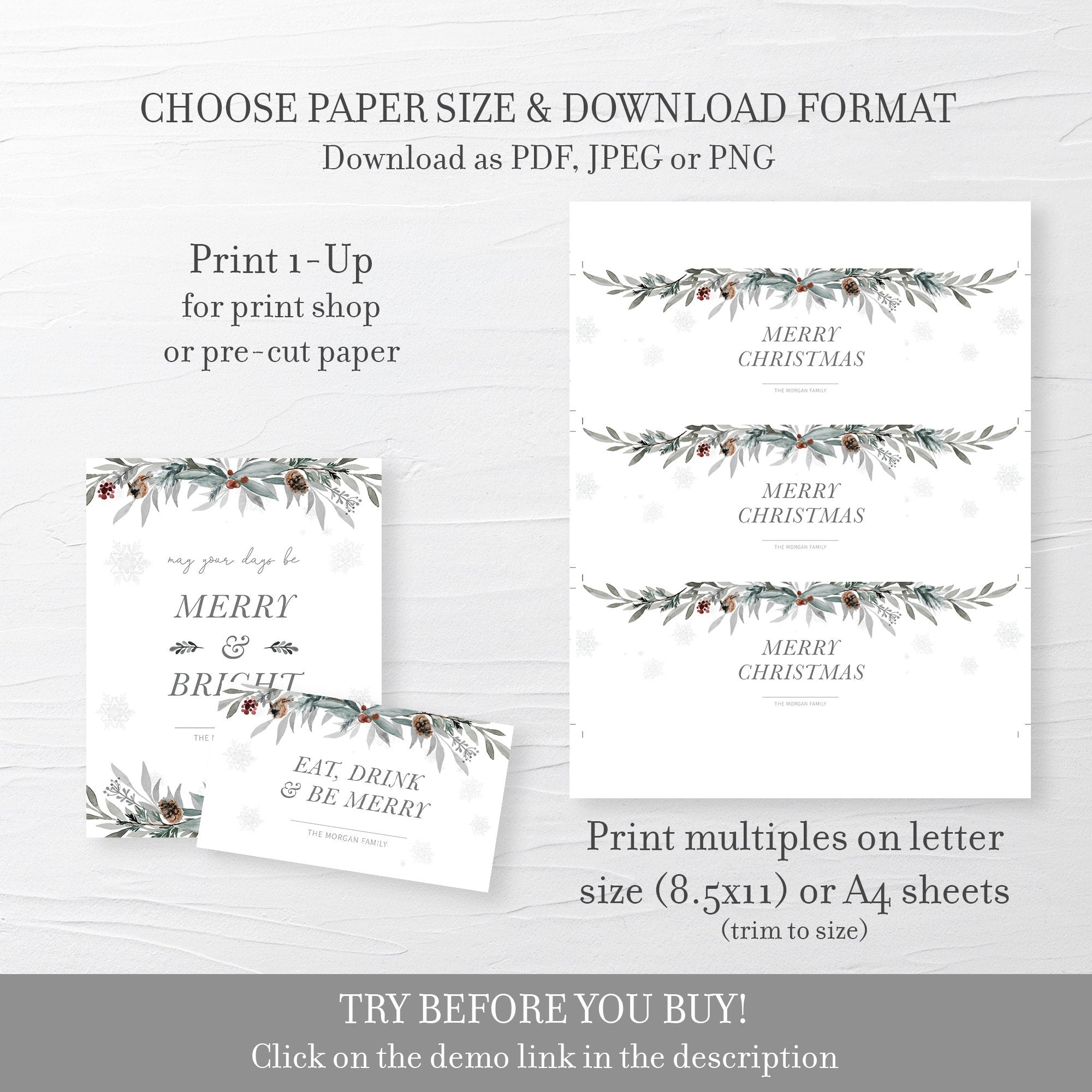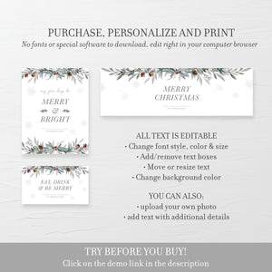 Winter Woodland Wine Bottle Labels Template, Printable Christmas Party Wine Favor Tag, Editable INSTANT DOWNLOAD - FB100