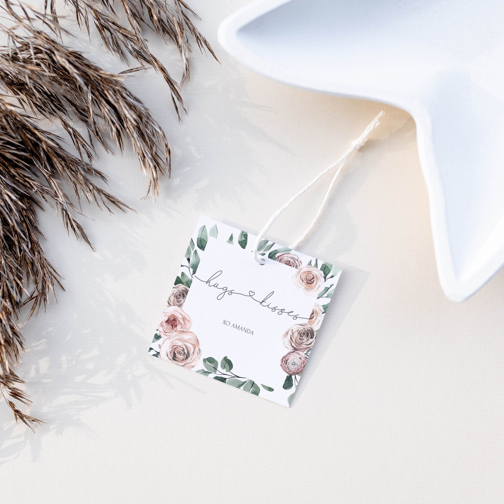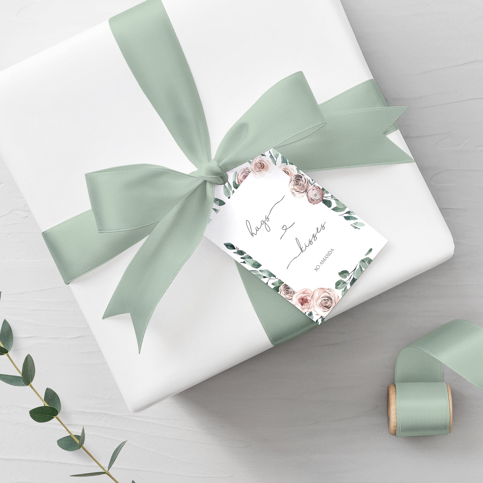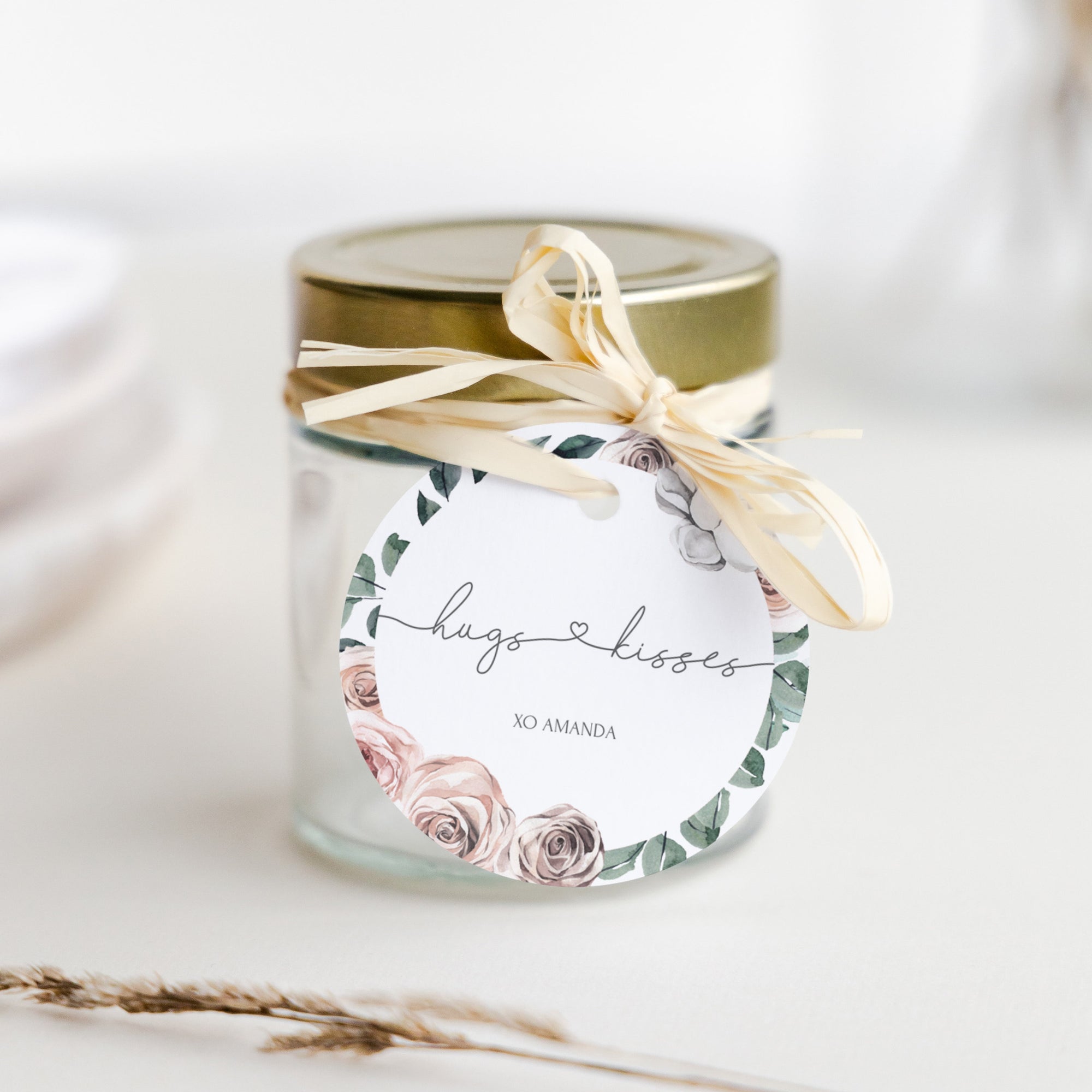 Boho Rose Hugs and Kisses Gift Tags, Printable Valentines Day Favor Tags, Editable INSTANT DOWNLOAD - BR100