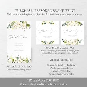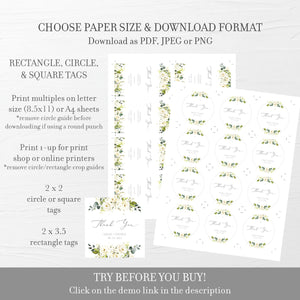 White Floral Greenery Wedding Stickers Template, Printable Wedding Thank You Stickers, Editable INSTANT DOWNLOAD - WRG100