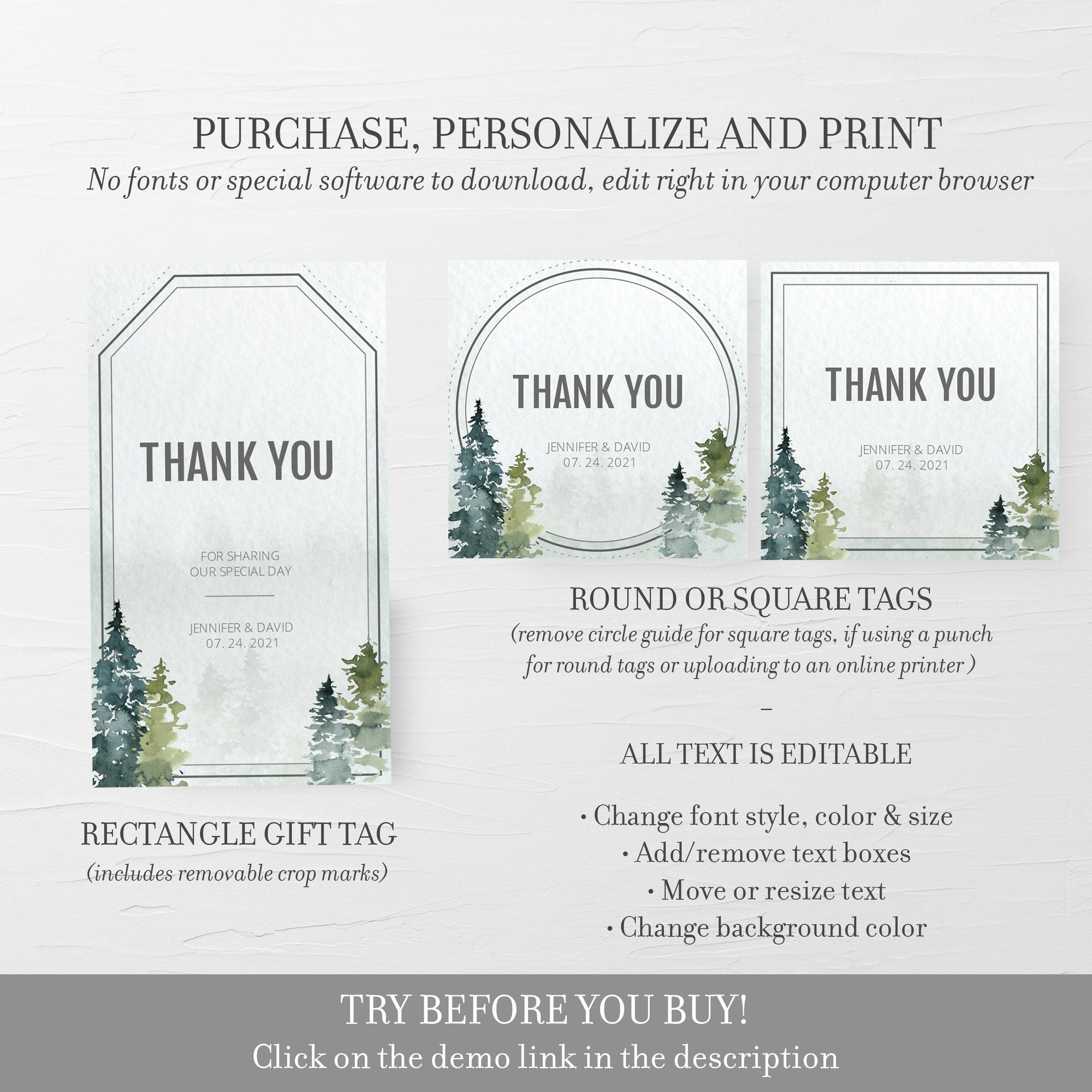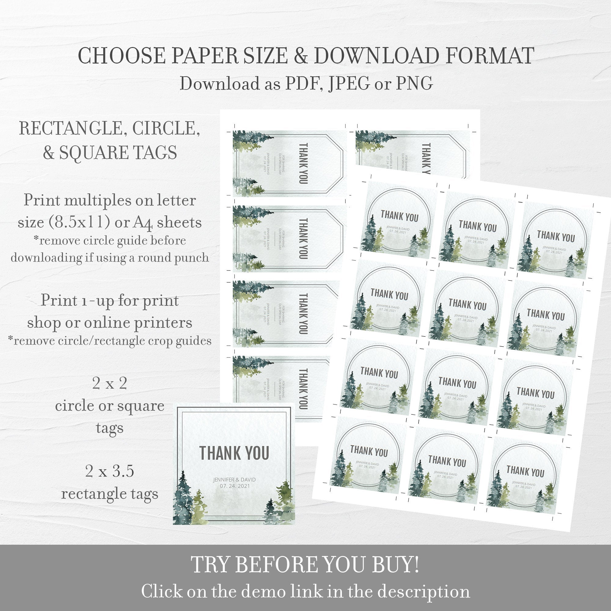 Forest Wedding Stickers Template, Printable Woodland Thank You Stickers, Editable INSTANT DOWNLOAD - D100