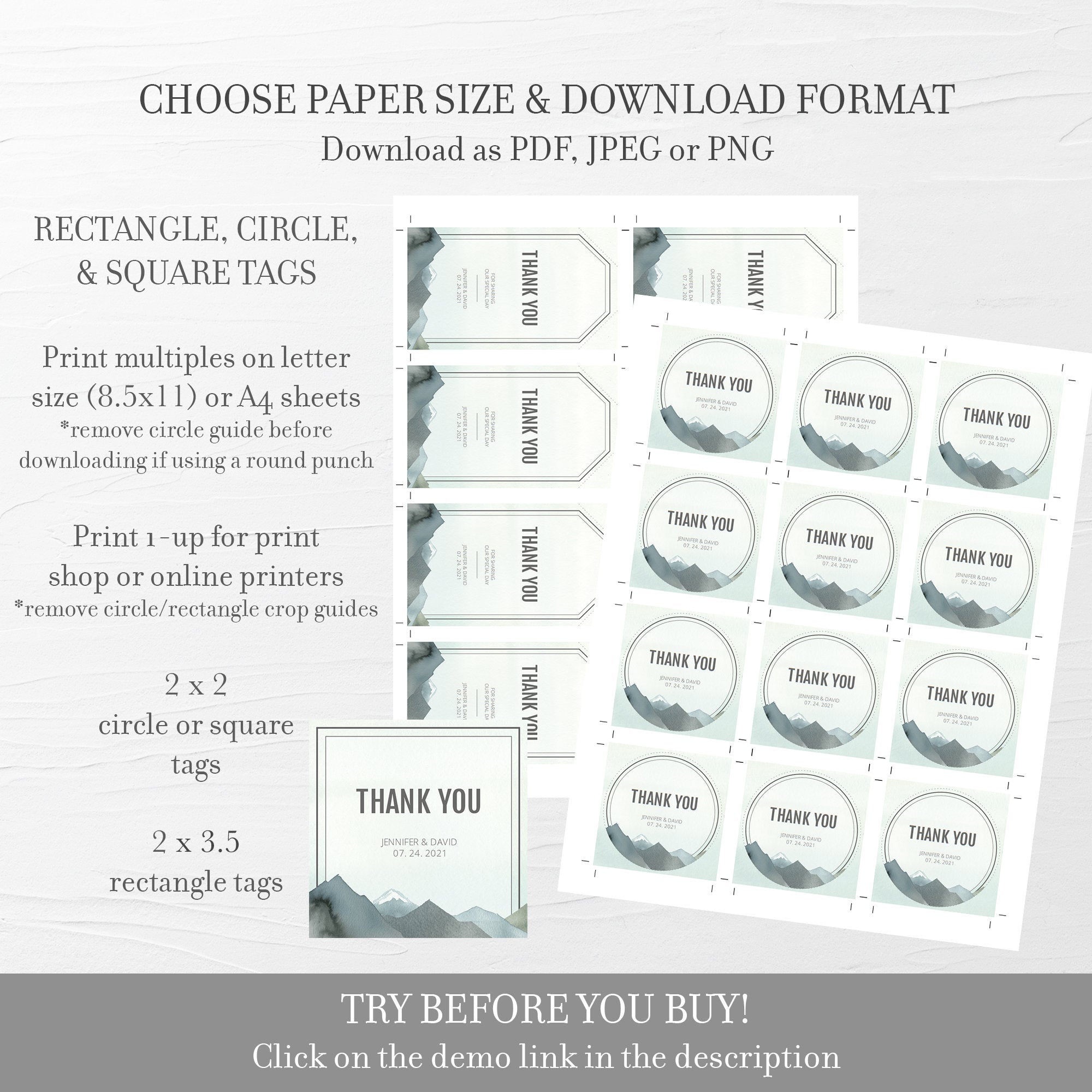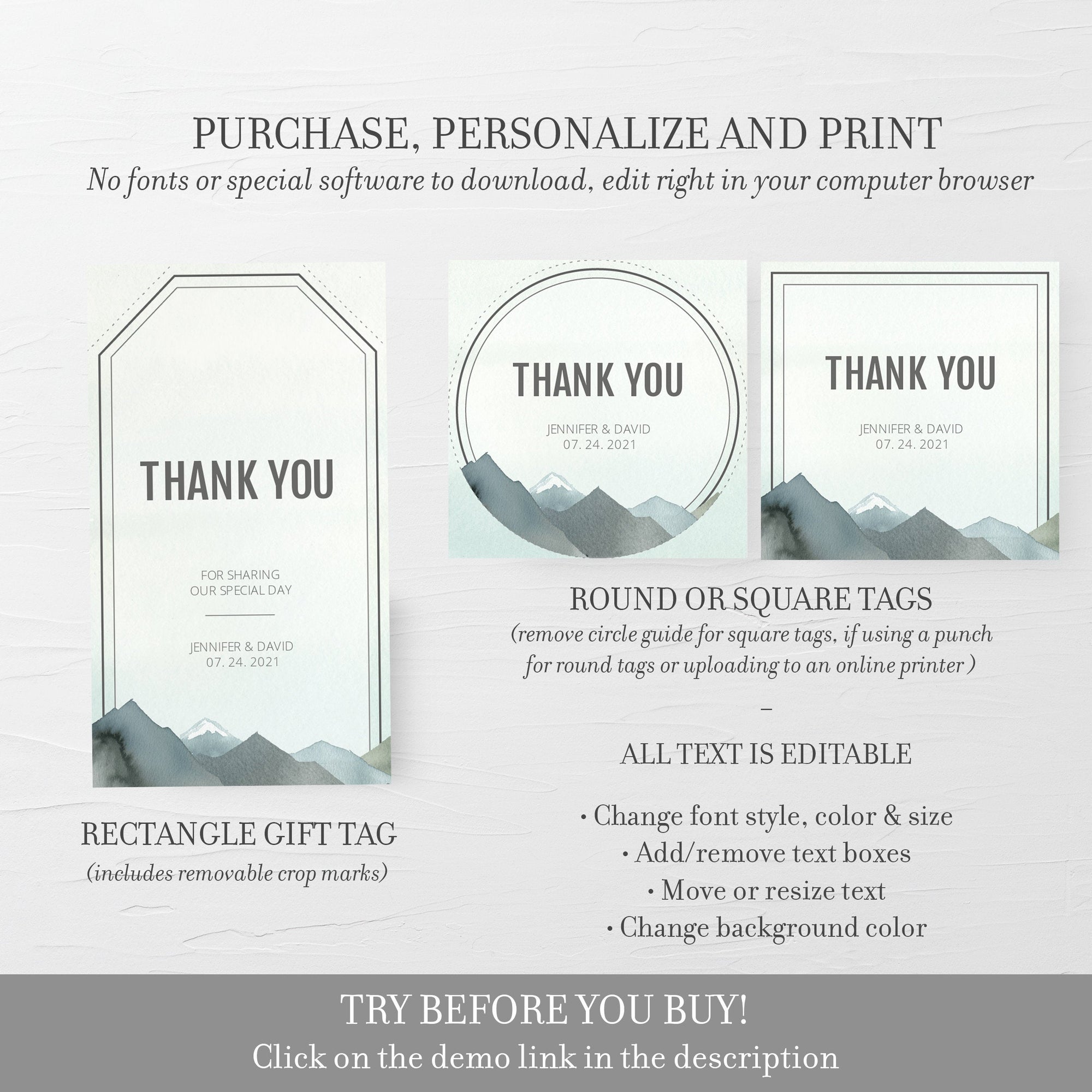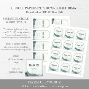 Mountain Wedding Stickers Template, Printable Outdoor Wedding Thank You Stickers, Editable INSTANT DOWNLOAD - D100