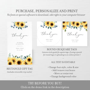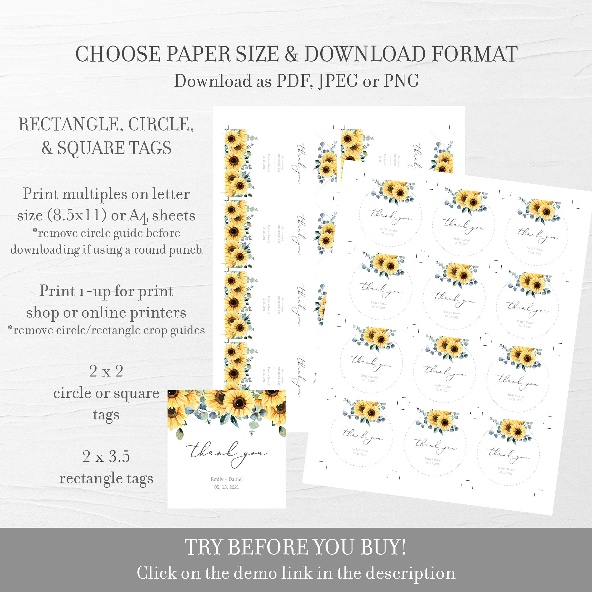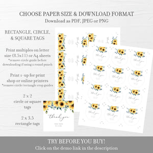 Sunflower Wedding Stickers Template, Printable Wedding Thank You Stickers , Editable INSTANT DOWNLOAD - S100