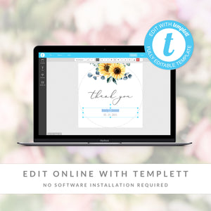 These sunflower stickers are available as an INSTANT DOWNLOAD editable template. Edit right in your browser using the online program, Templett. No software to download or fonts to install and you can even try it out before you buy!