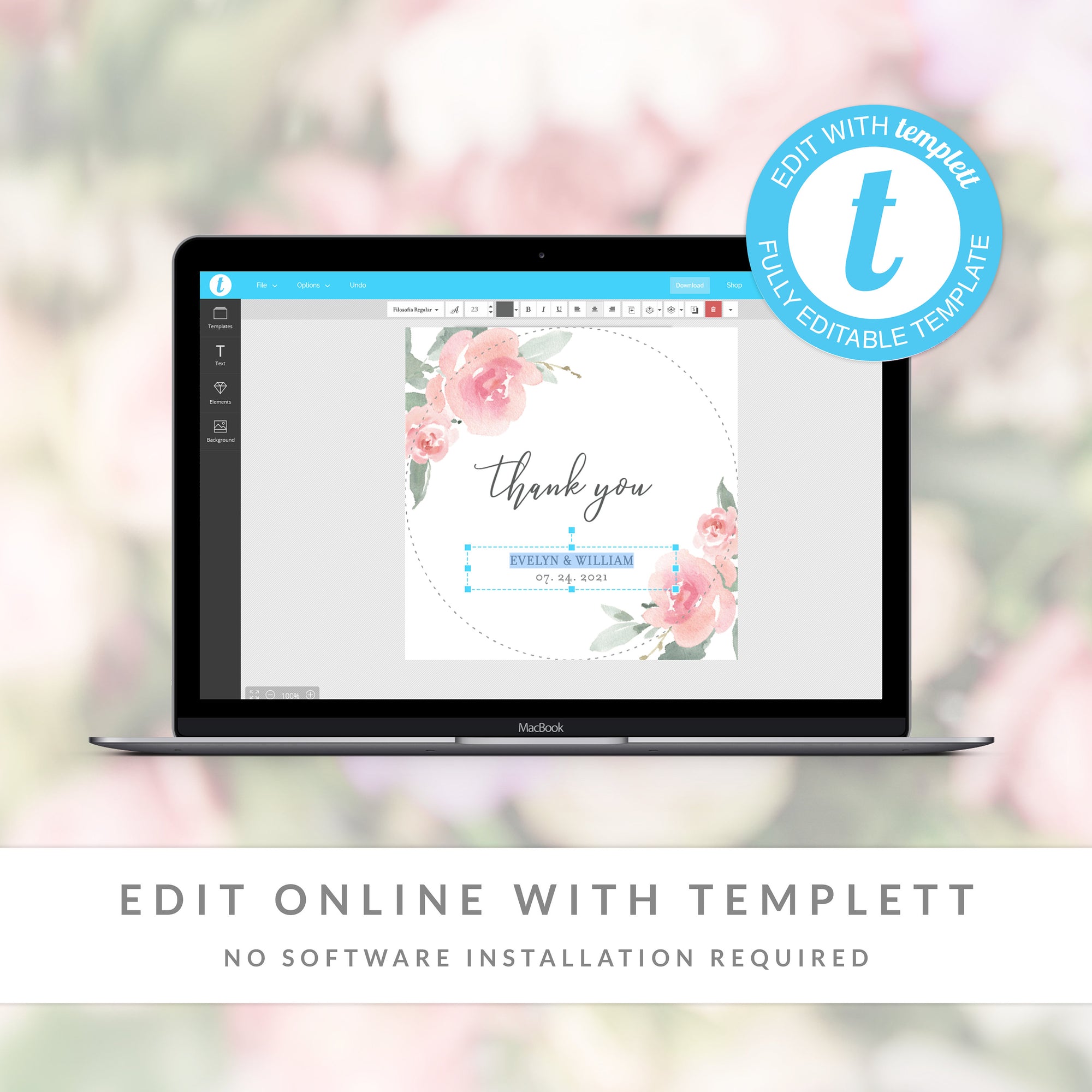 These floral stickers are available as an INSTANT DOWNLOAD editable template. Edit right in your browser using the online program, Templett. No software to download or fonts to install and you can even try it out before you buy!