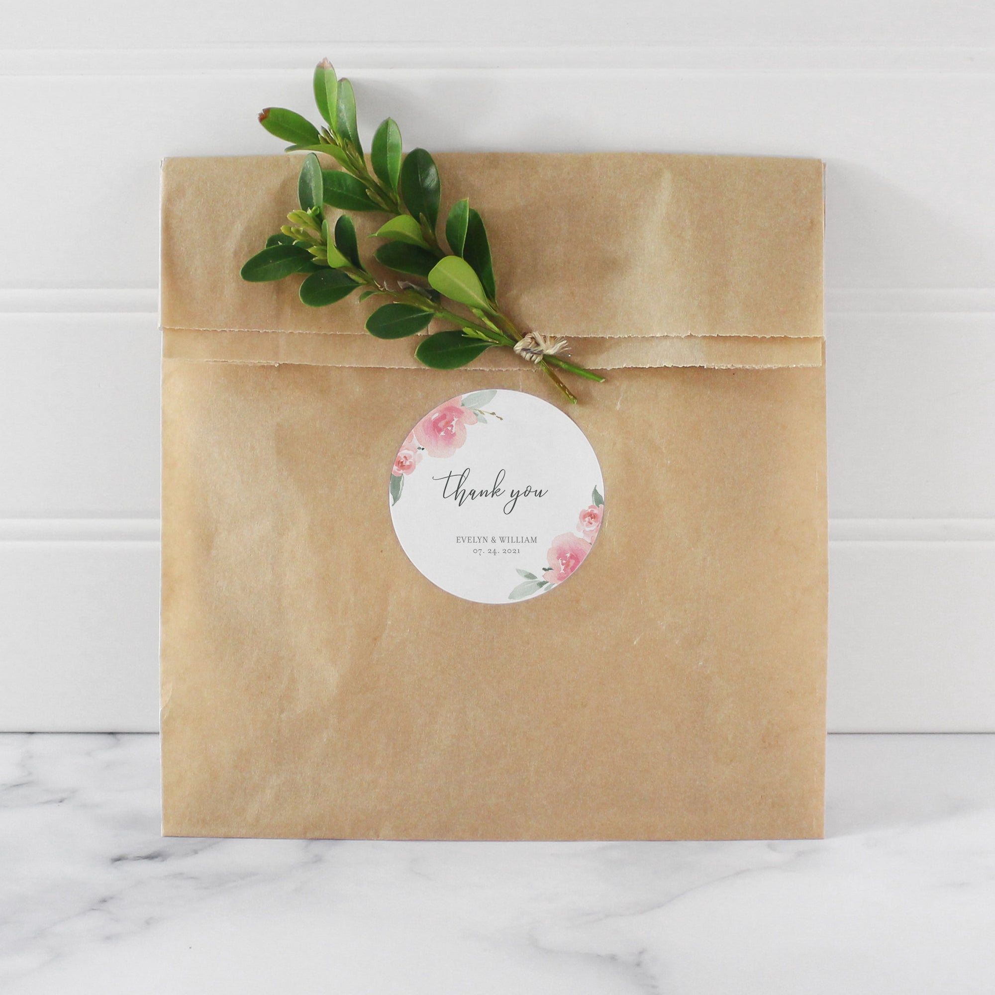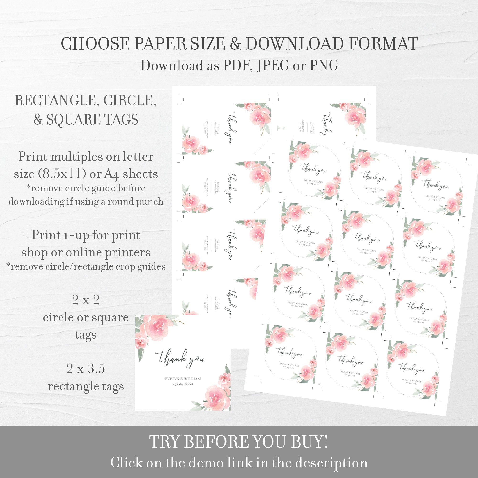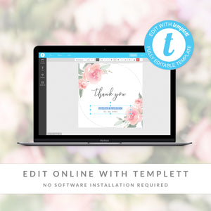 Blush Pink Floral Wedding Stickers Template, Printable Wedding Thank You Stickers, Editable INSTANT DOWNLOAD - FR100