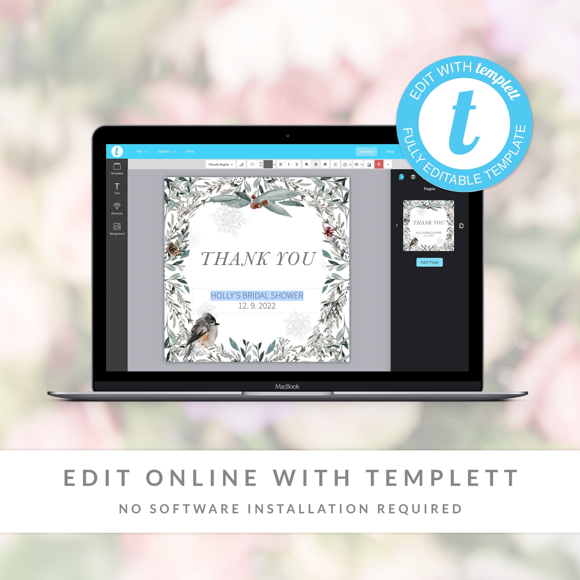 These winter bridal shower favor tags are available as an INSTANT DOWNLOAD editable template. Edit right in your browser using the online program, Templett. No software to download or fonts to install and you can even try it out before you buy!