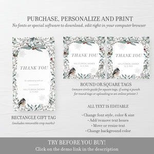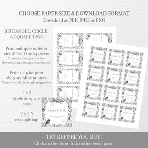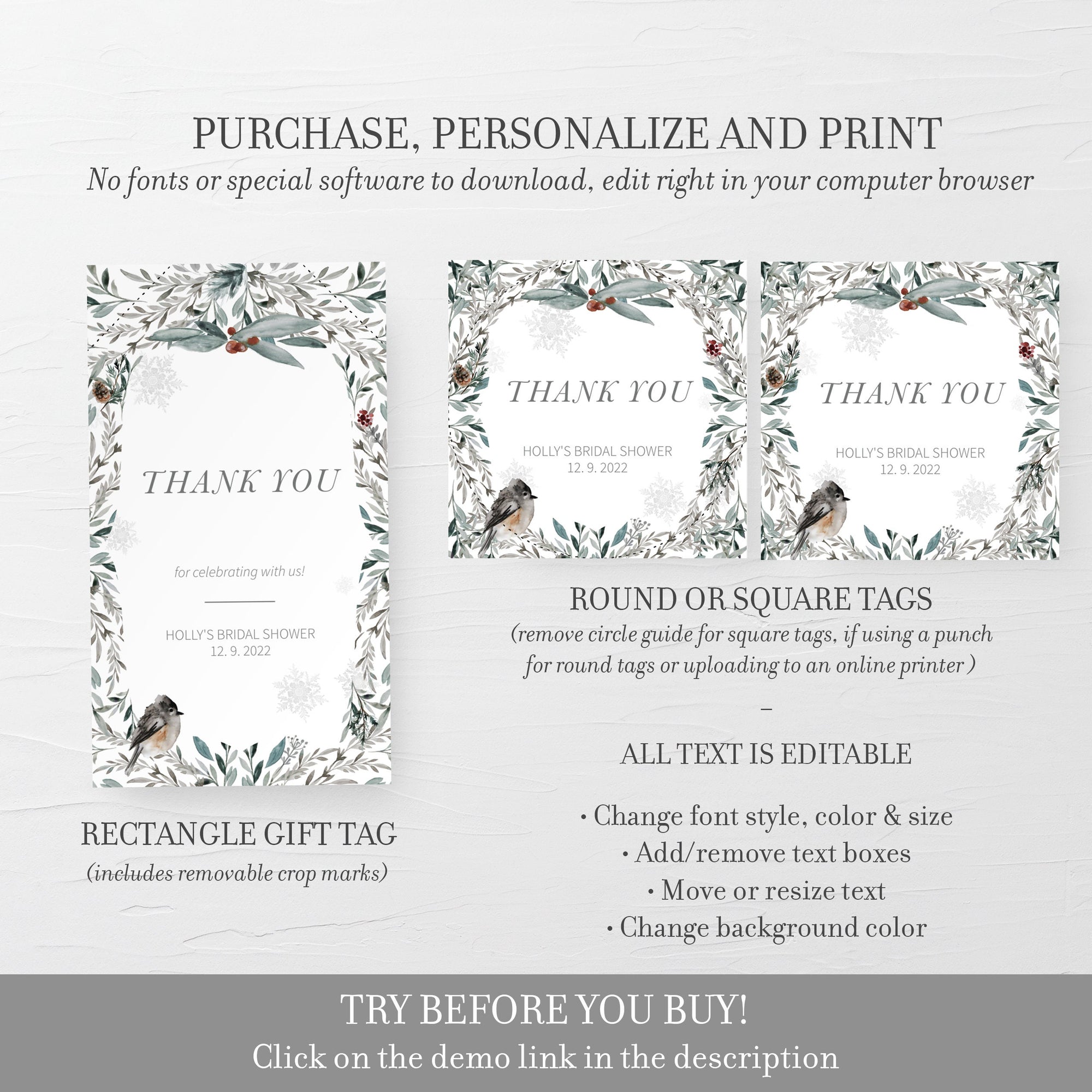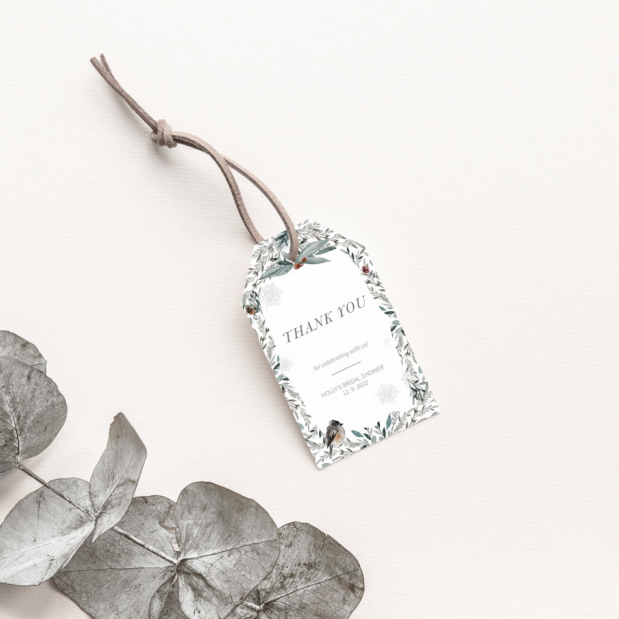 Winter Woodland Bridal Shower Favor Tags Template, Printable Christmas Bridal Shower Thank You Tags, Editable NSTANT DOWNLOAD - FB100