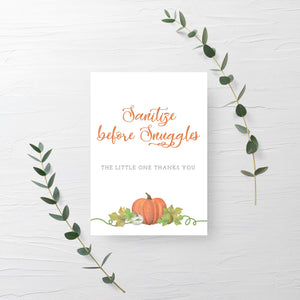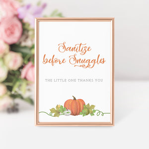 Little Pumpkin Baby Shower Sanitize Before Snuggles Sign, Printable Sip and See Welcome Sign, INSTANT DOWNLOAD - HP100
