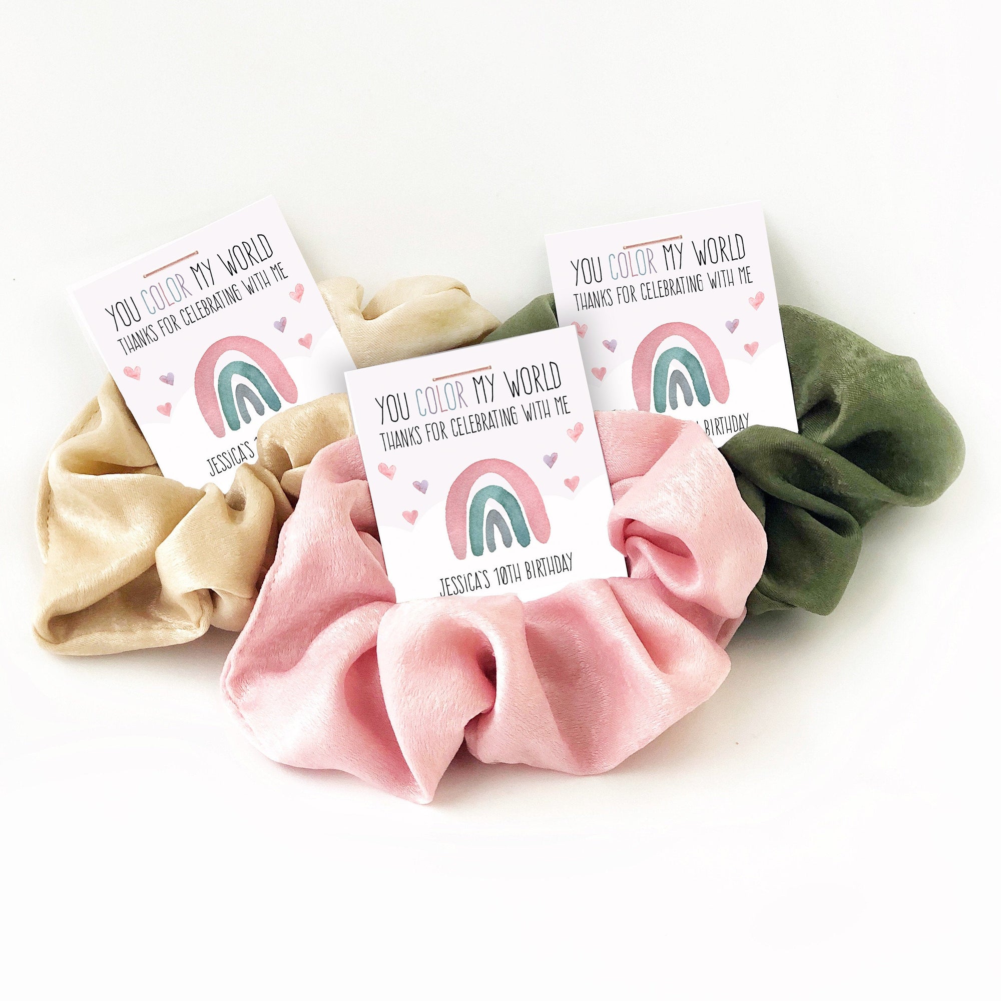Boho Rainbow Birthday Party Favors, Pastel Rainbow Party Favors, Hair Scrunchies - R100