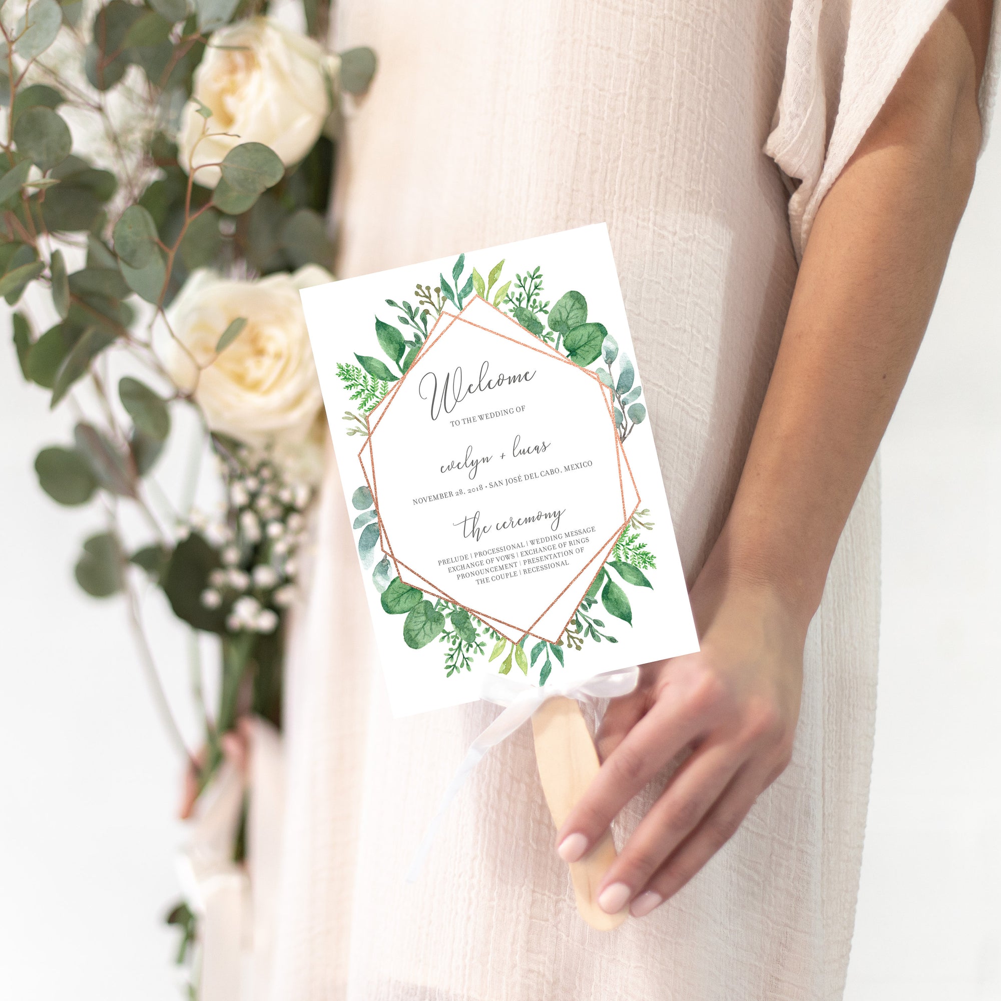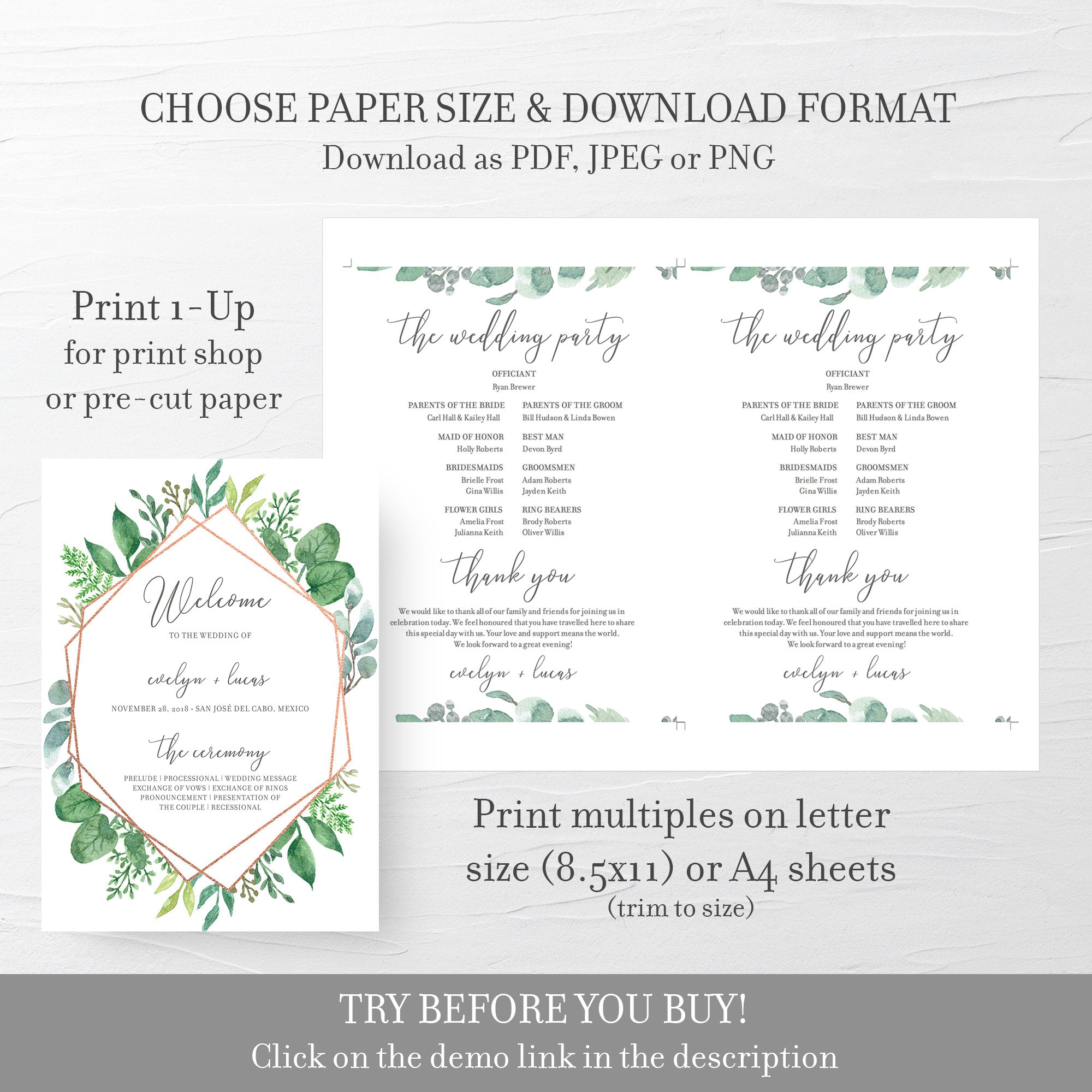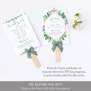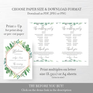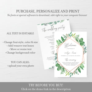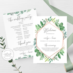 Geometric Rose Gold Greenery Wedding Program Template, Printable Ceremony Programs, Editable INSTANT DOWNLOAD - GFRG100