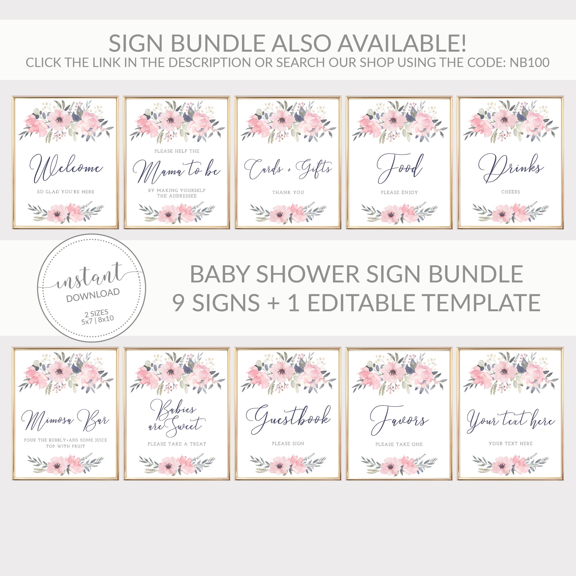 Navy and Blush Floral Baby Shower Sanitize Before Snuggles Sign, Printable Sip and See Welcome Sign, INSTANT DOWNLOAD - NB100
