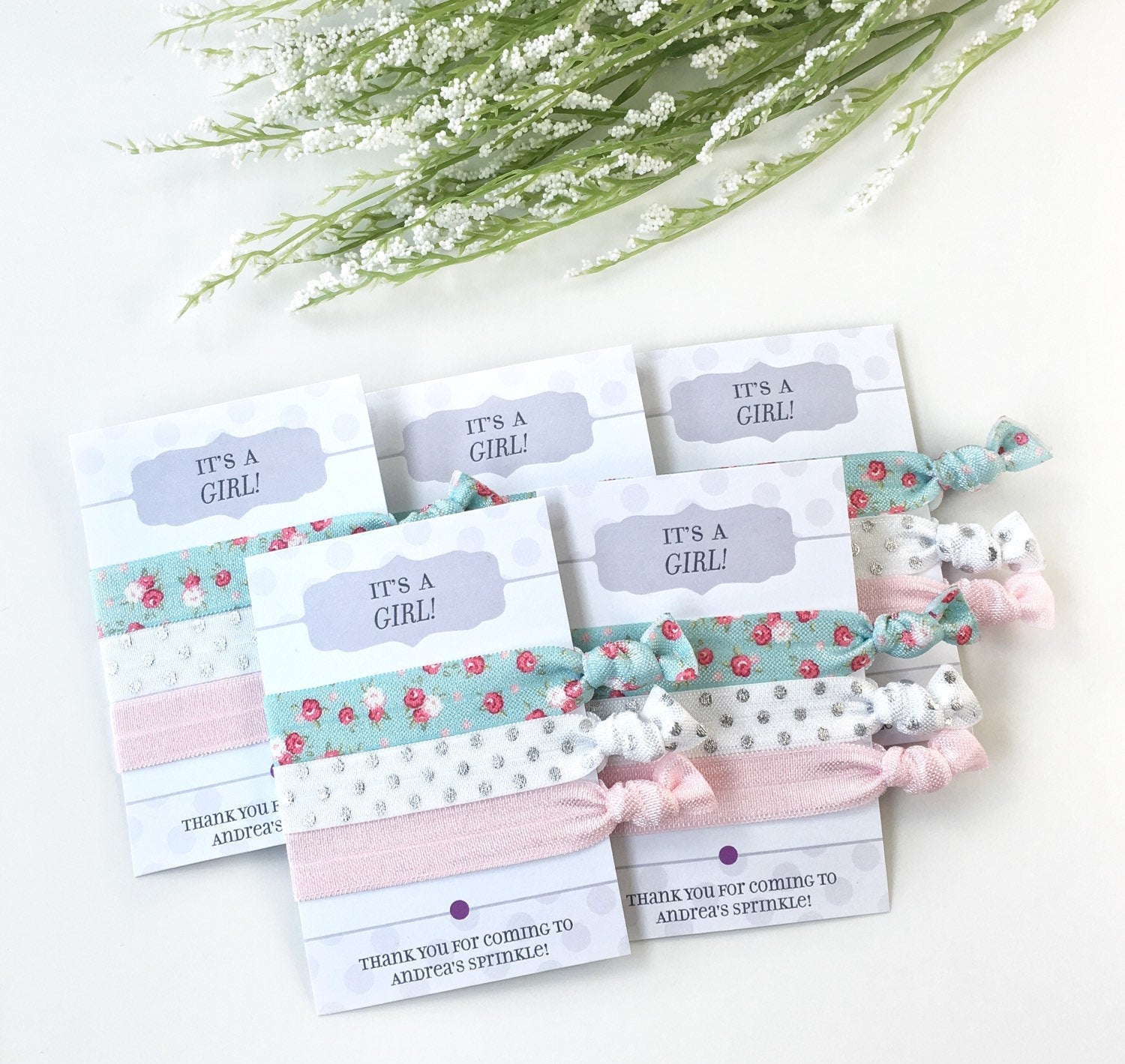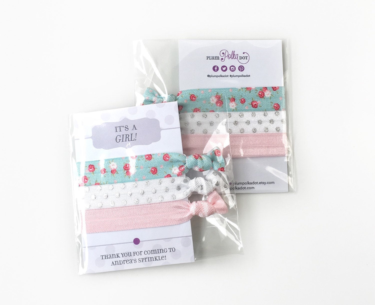 Sprinkle Baby Girl Shower Favors, Aqua and Pink Baby Shower, Hair Ties