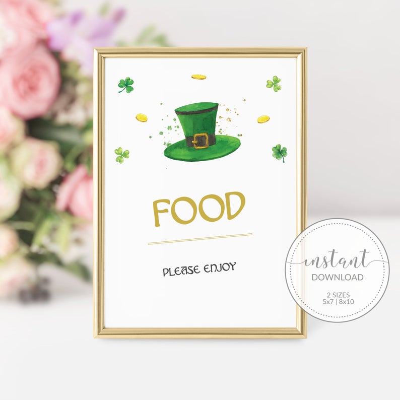 St Patricks Day Food Sign Printable, St Paddys Buffet Sign, INSTANT DOWNLOAD - SP100