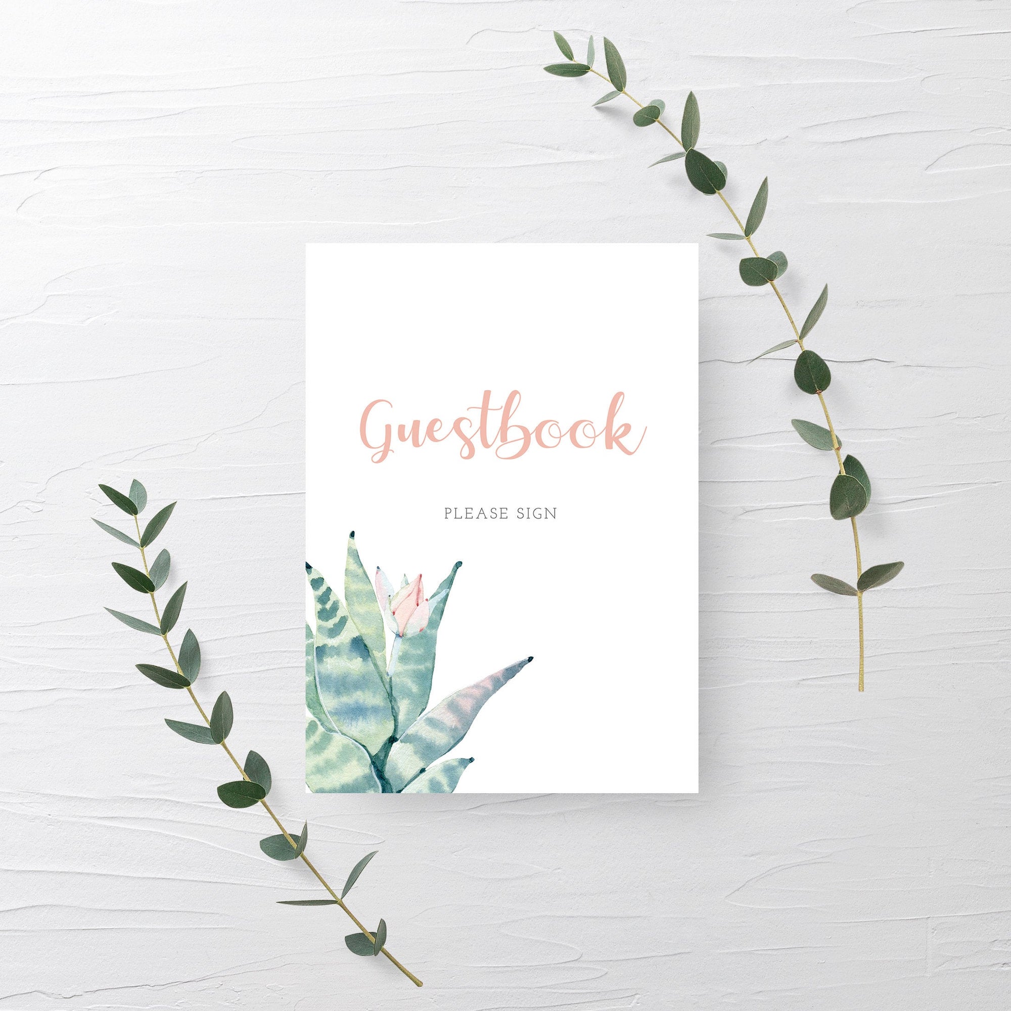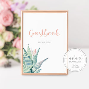 Succulent Guestbook Sign Printable, INSTANT DOWNLOAD - CS100