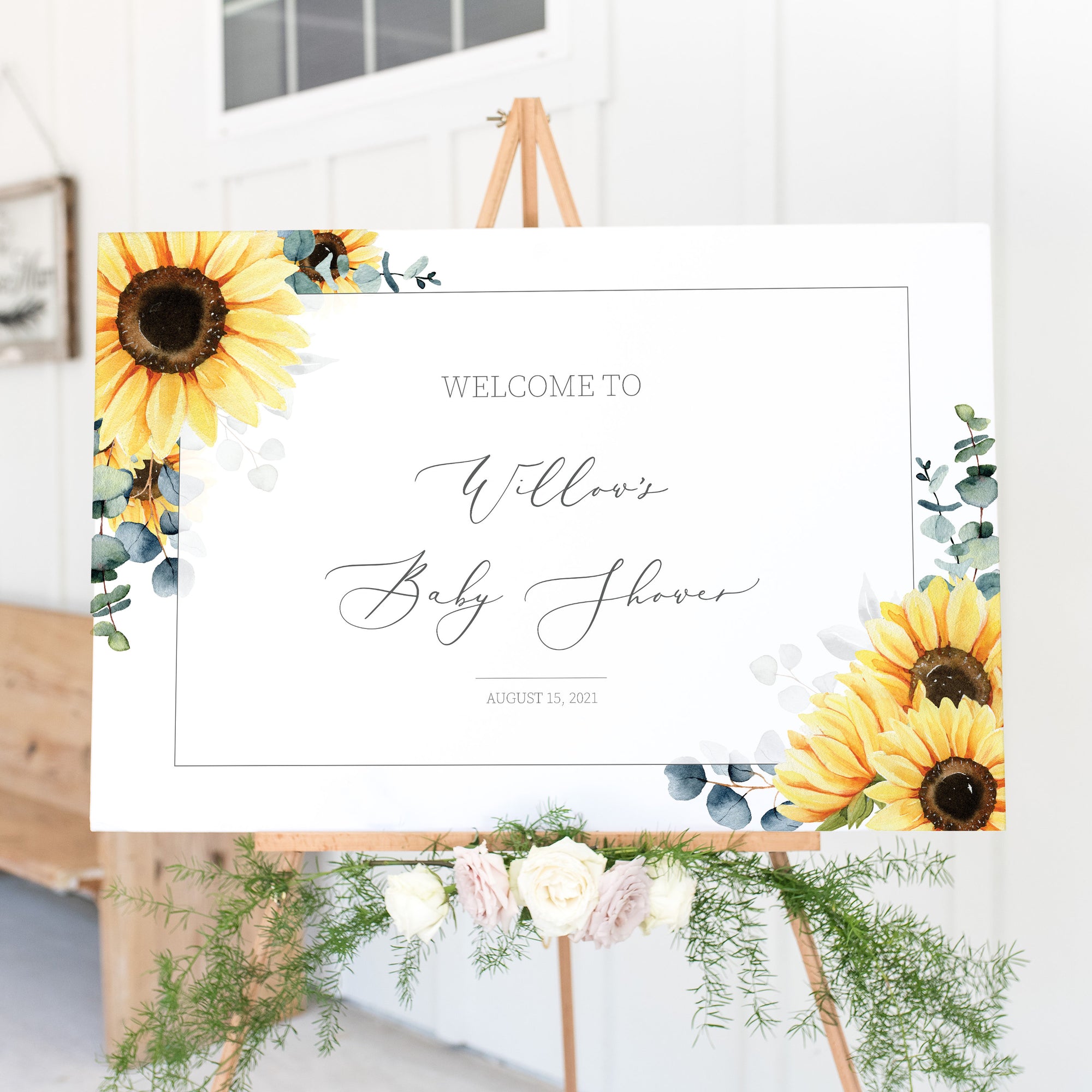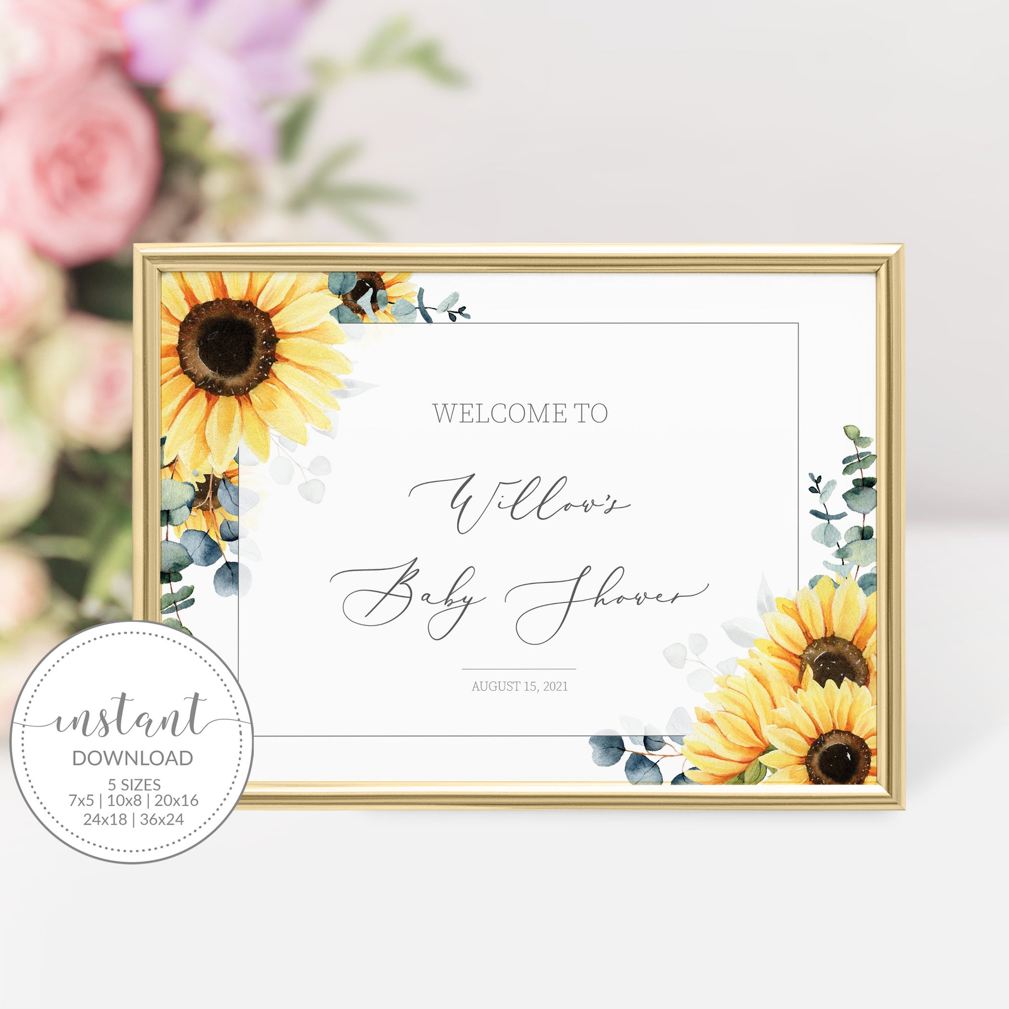 Sunflower Baby Shower Welcome Sign Template, Printable Large Welcome Sign, Editable INSTANT DOWNLOAD - S100