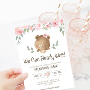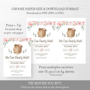 Teddy Bear Baby Girl Shower Girl Invitation Template, Printable Shower Invite, Editable INSTANT DOWNLOAD - TB100