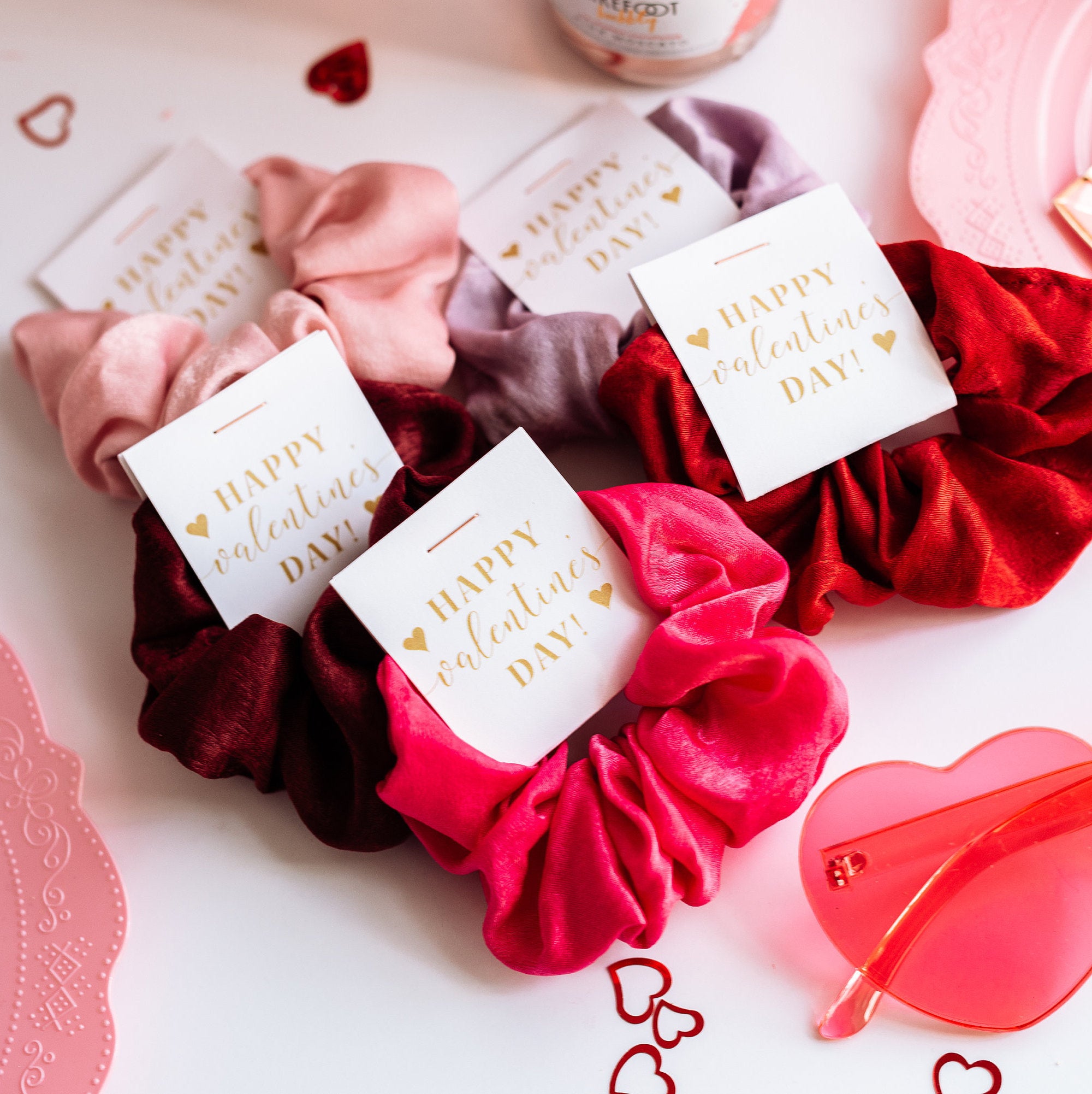 Valentines Day Party Favors, Gift for Friends, Hair Scrunchies