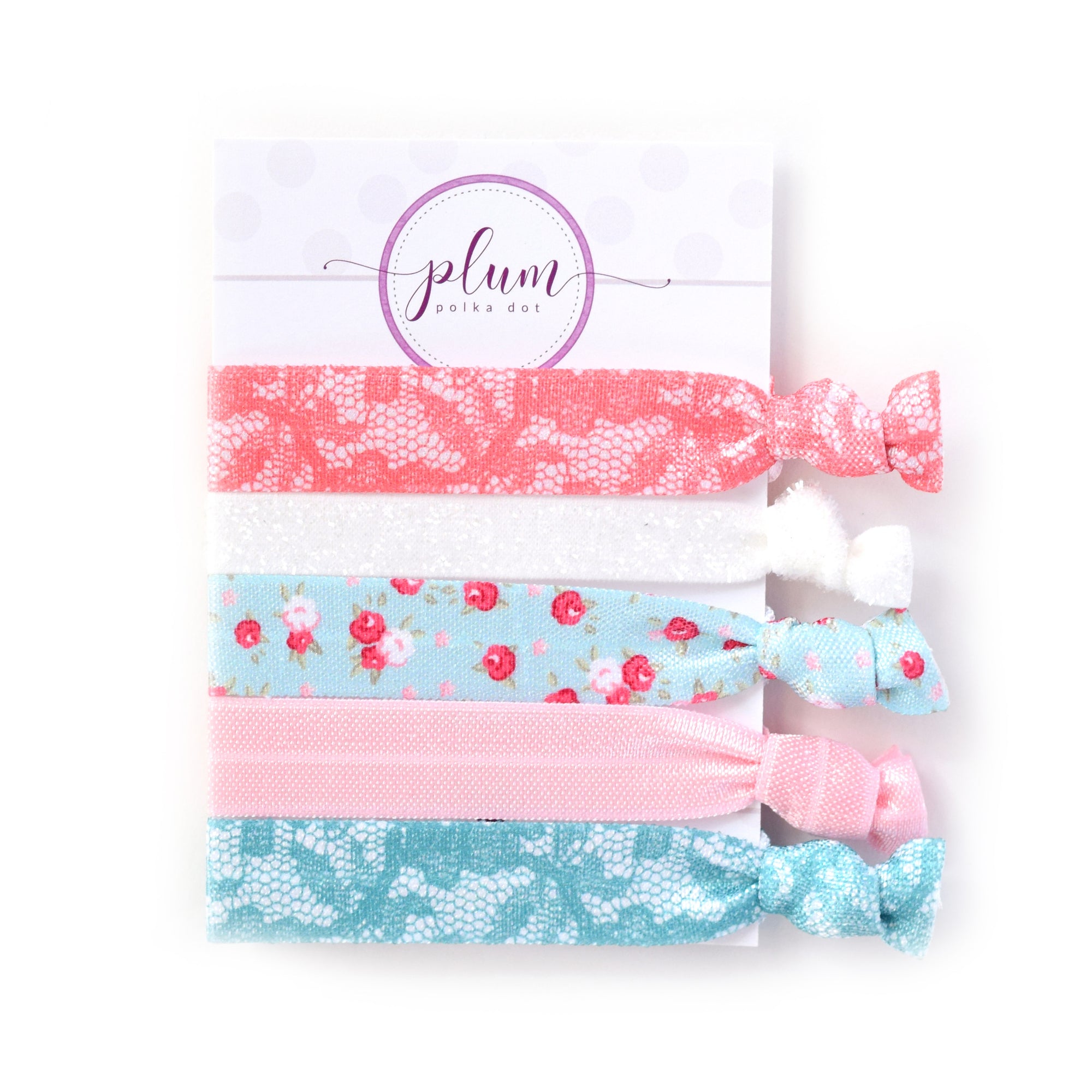 Collection of 5 soft elastic hair ties in a vintage floral theme! The perfect accessory for both girls and women.