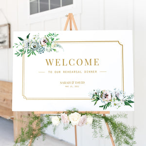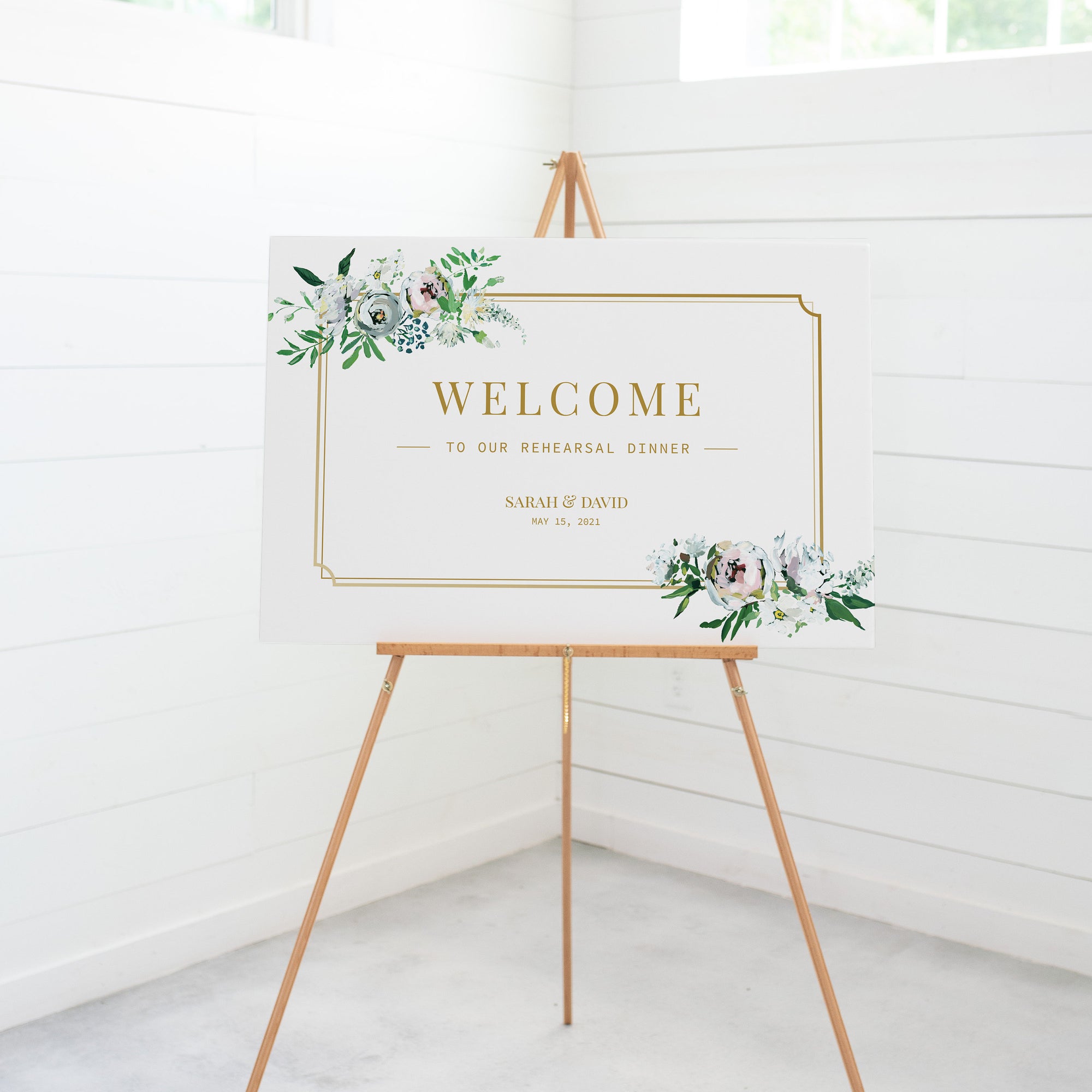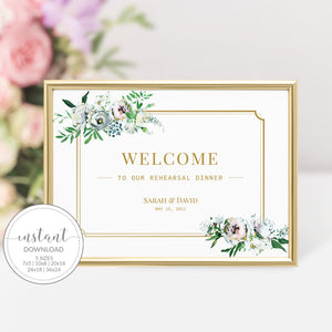 Blush Floral Greenery Wedding Rehearsal Dinner Sign Template, Printable Large Welcome Sign, Editable INSTANT DOWNLOAD - BGF100