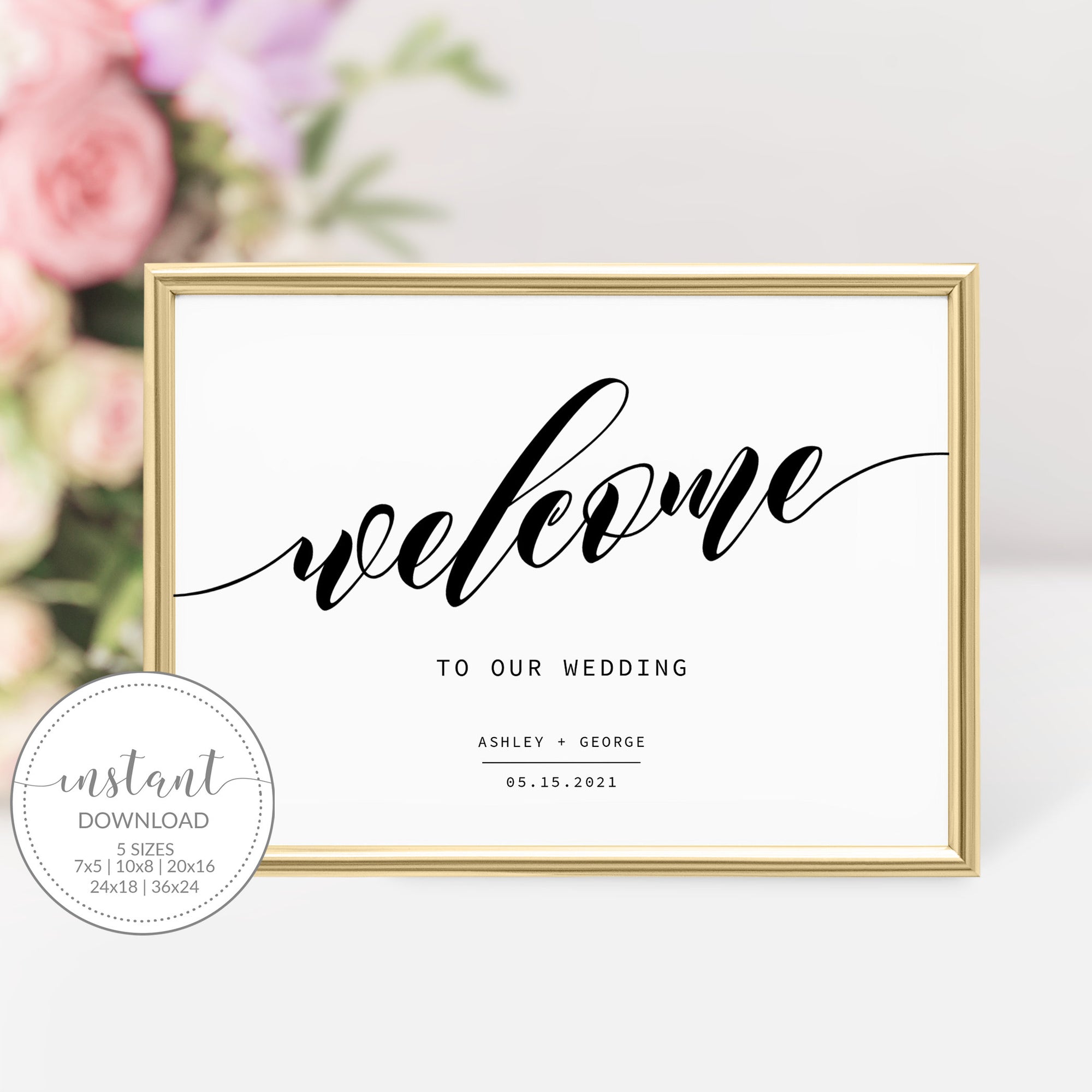 Black Script Wedding Welcome Sign Template, Printable Minimalist Large Welcome Sign, INSTANT DOWNLOAD - SFB100