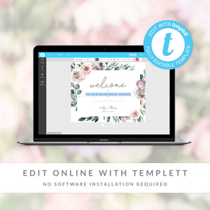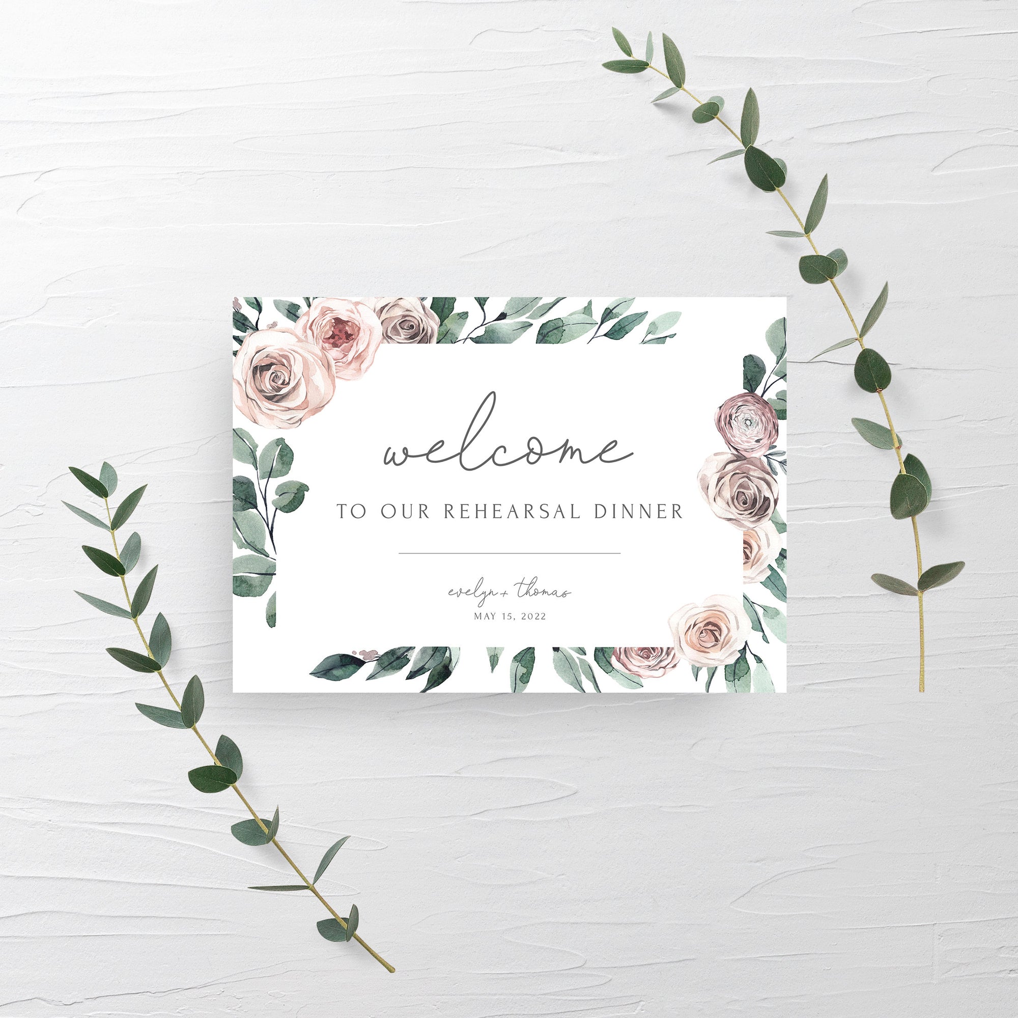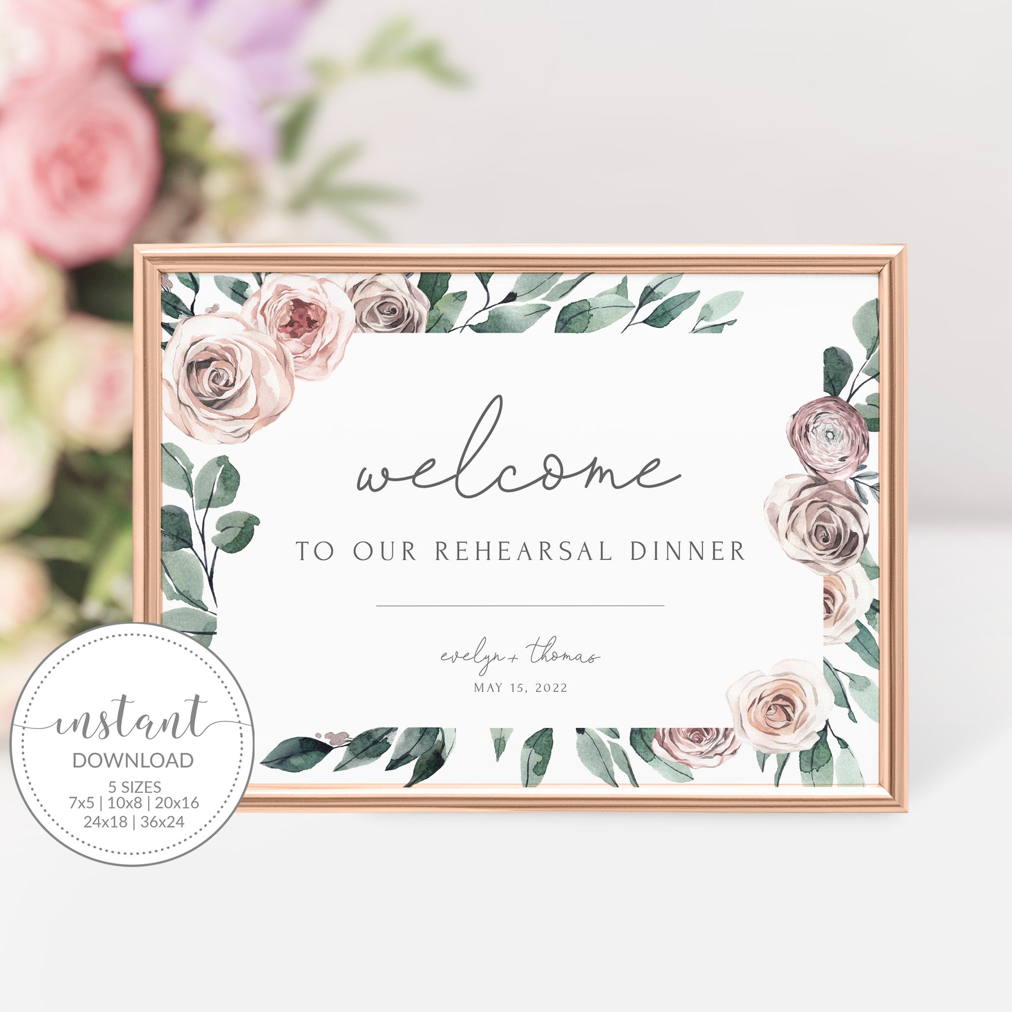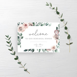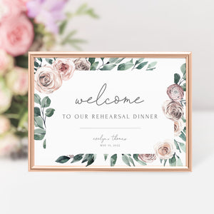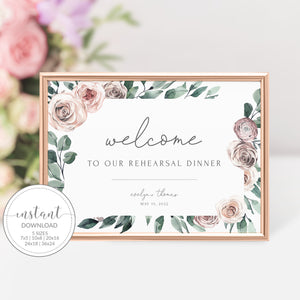 Boho Rose Wedding Rehearsal Dinner Welcome Sign Template, Printable Large Welcome Sign, Editable INSTANT DOWNLOAD - BR100