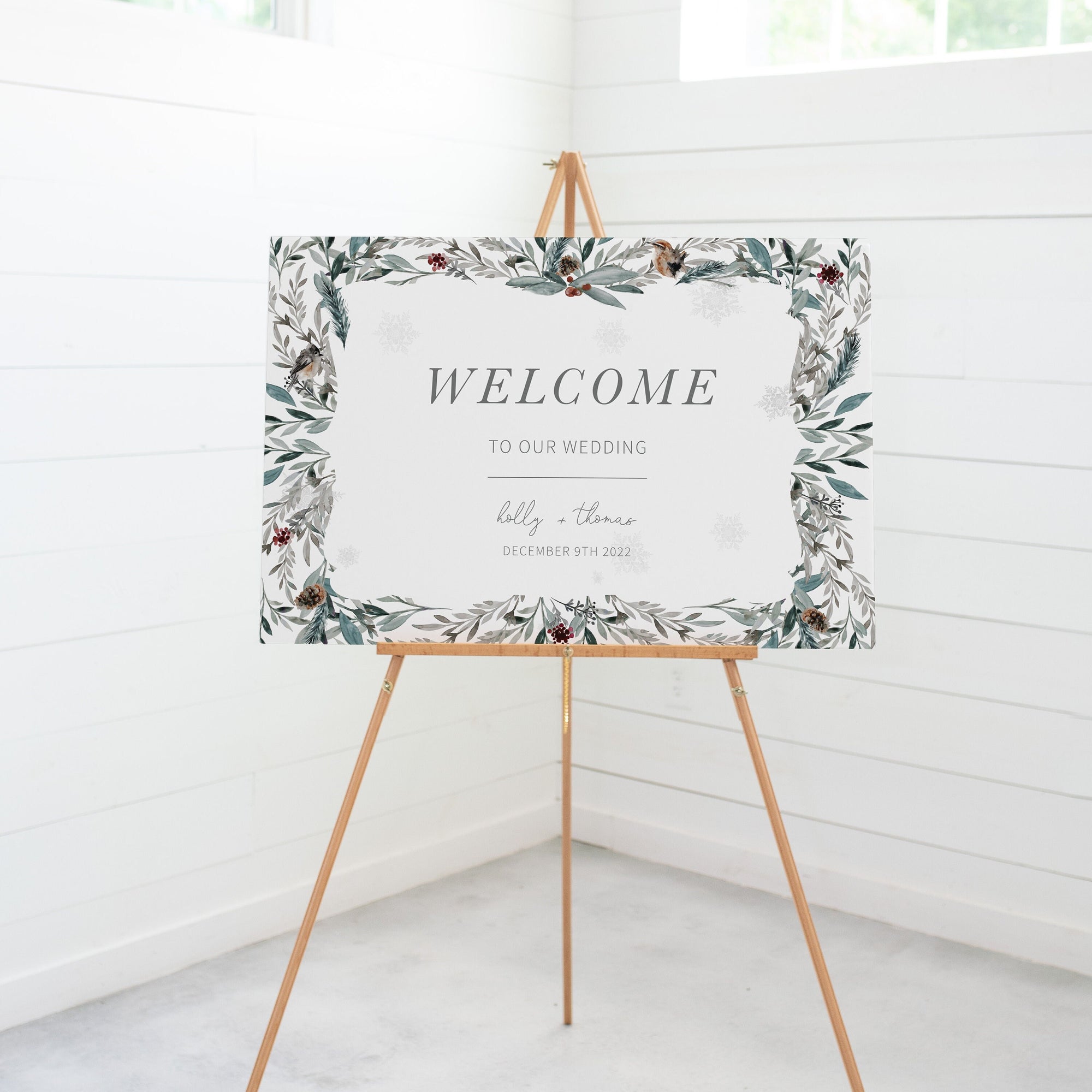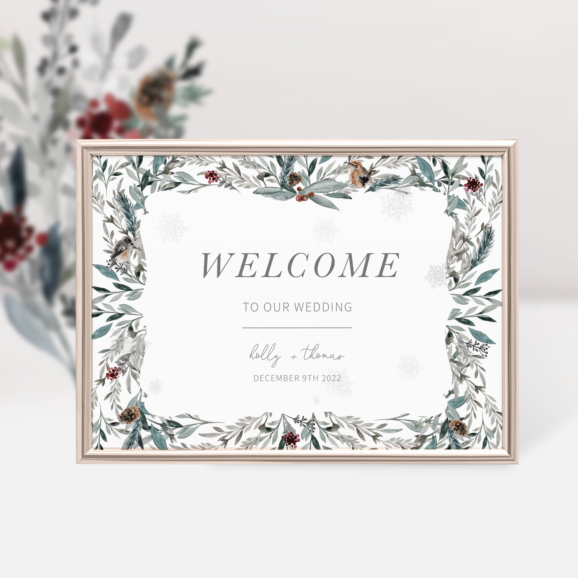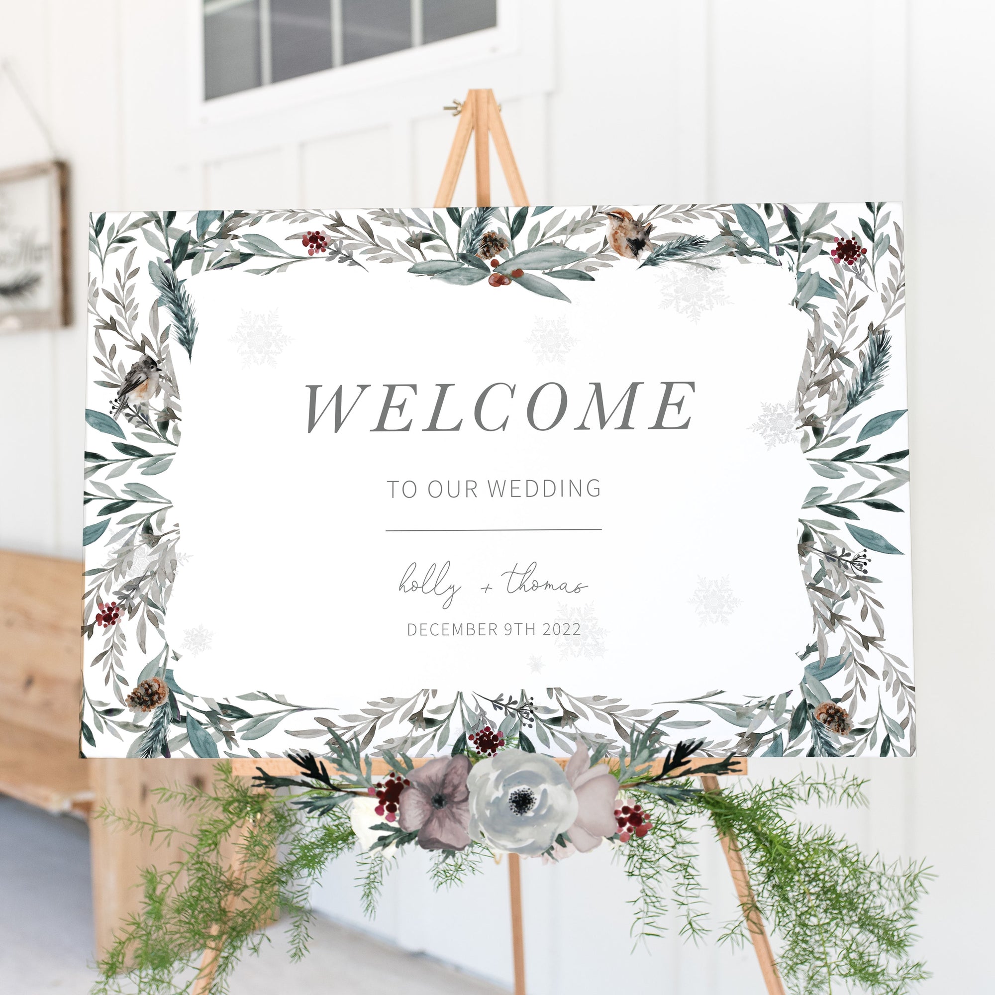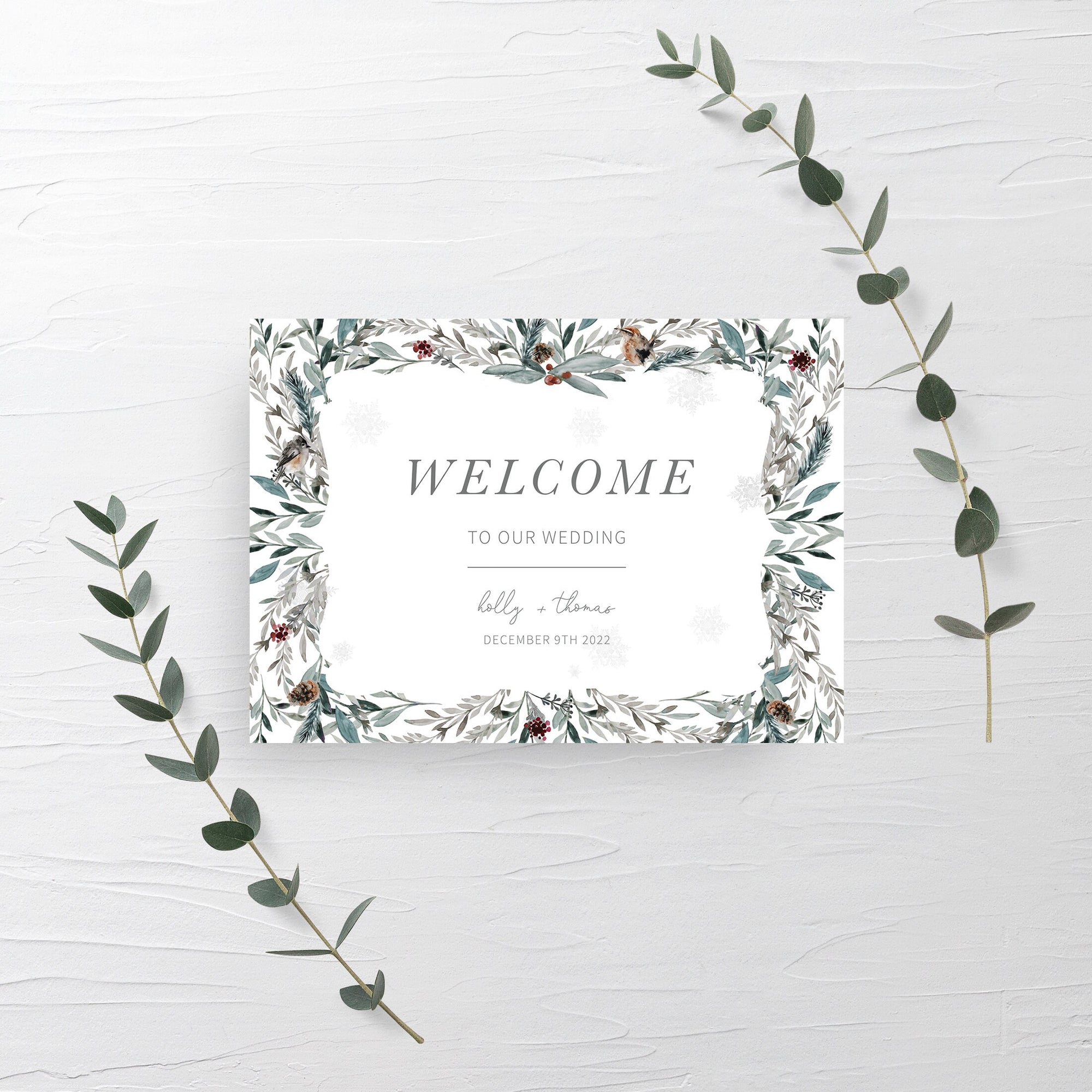 Winter Woodland Wedding Welcome Sign Template, Printable Large Christmas Wedding Sign, Editable INSTANT DOWNLOAD - FB100
