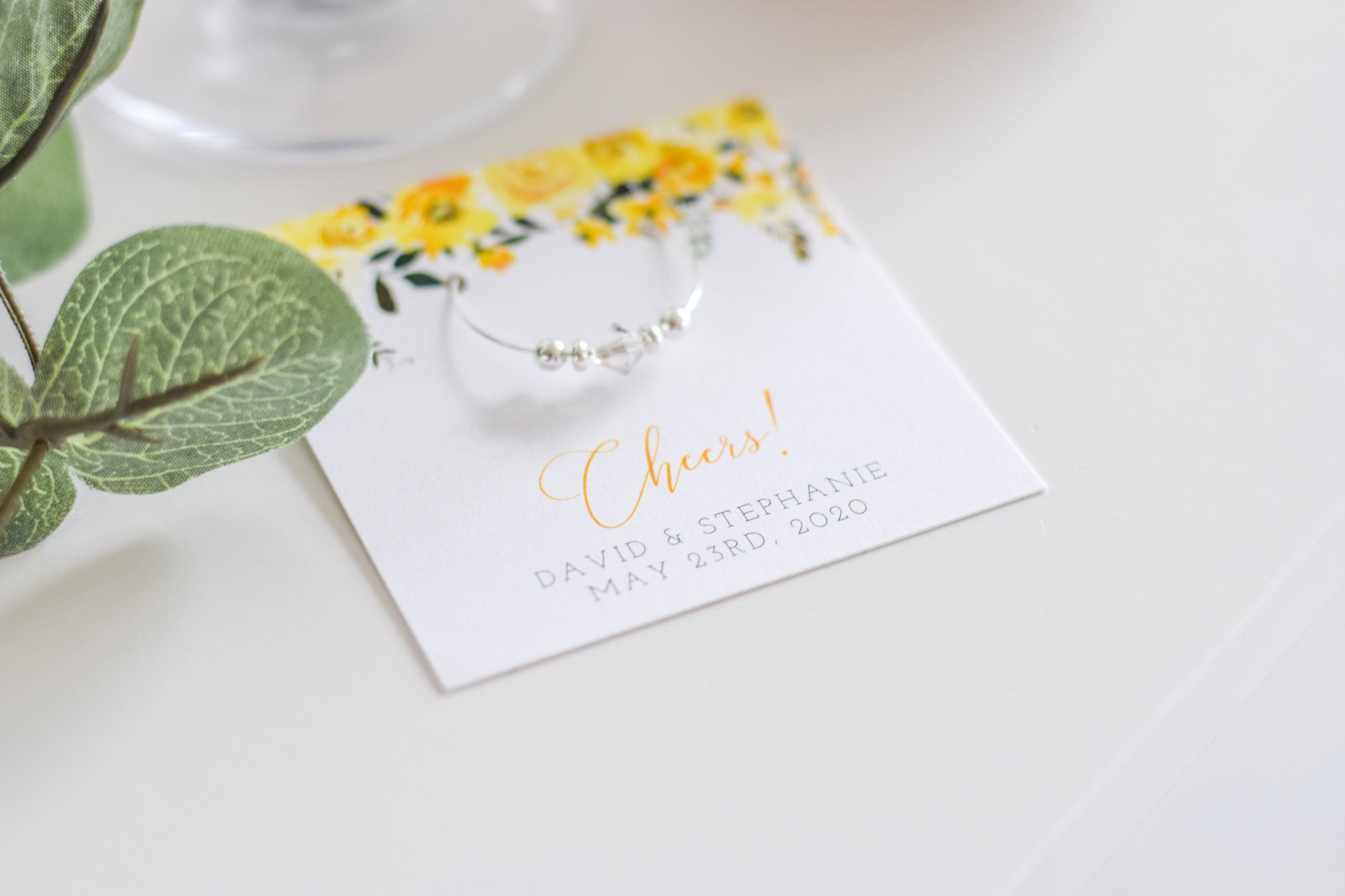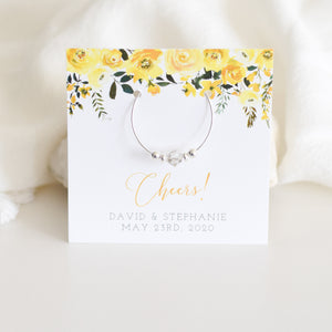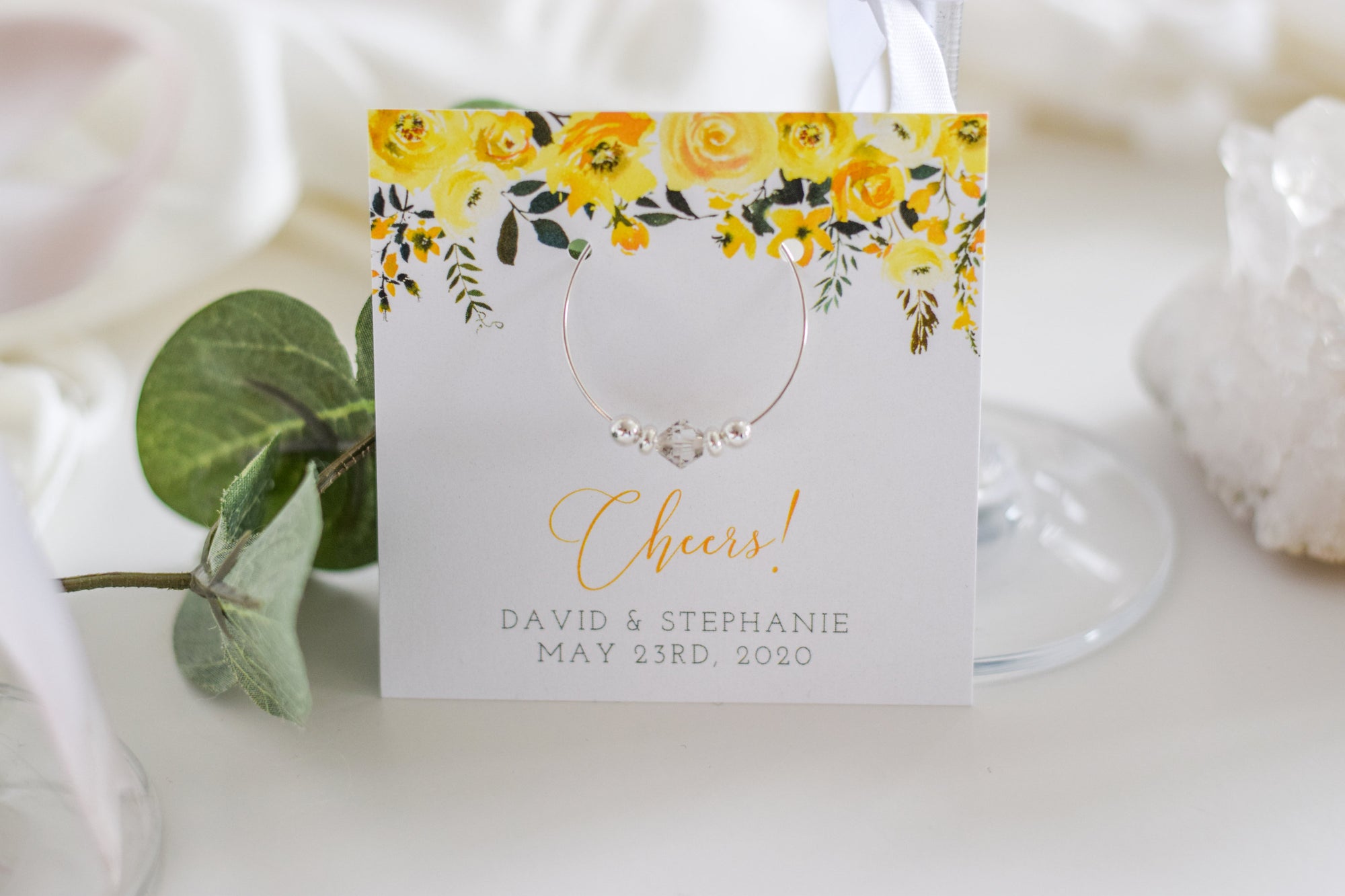 Yellow Floral Wedding Favors, Swarovski Crystal Wine Charms